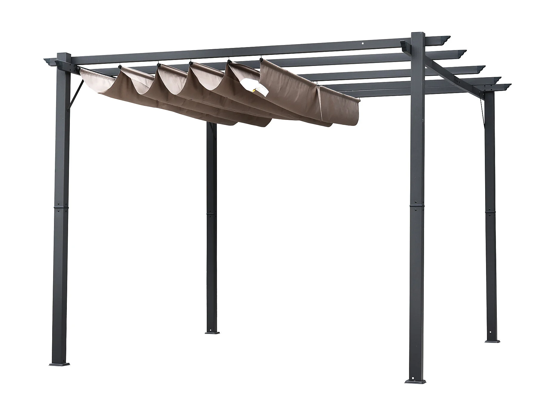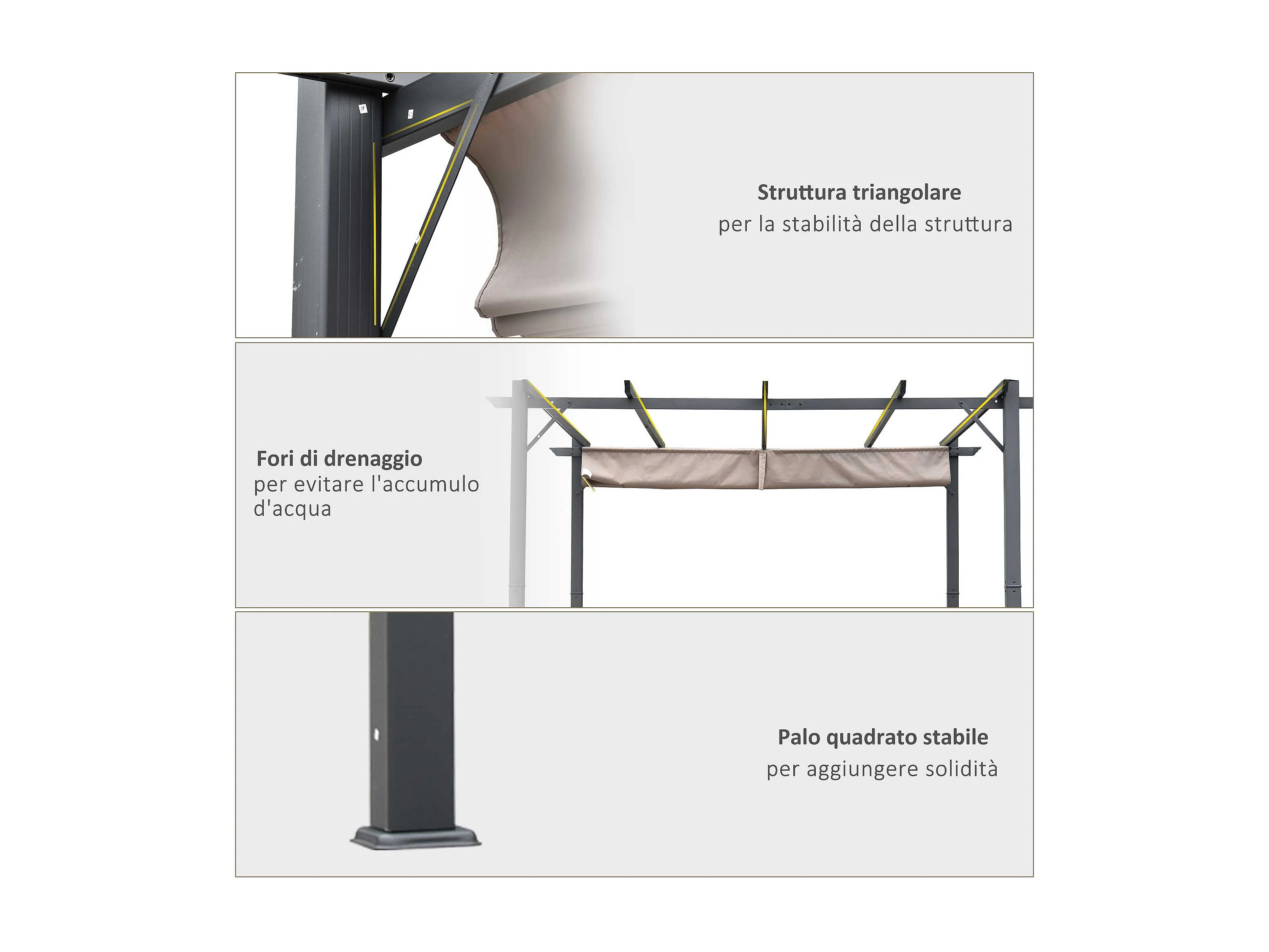 Pergola gazebo 3x3m con tetto retrattile anti uv in alluminio grigio