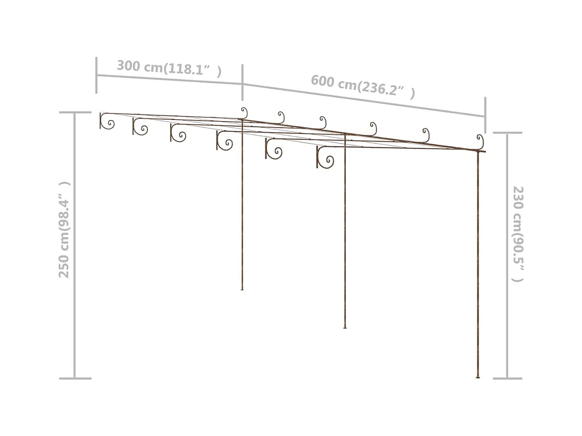 Pergolato da giardino Marrone Antico 6x3x2,5 mt Ferro