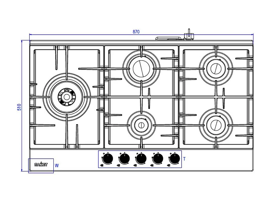 Piano cottura Samet Nettuno a gas da incasso 5 fuochi 90 cm. in acciaio