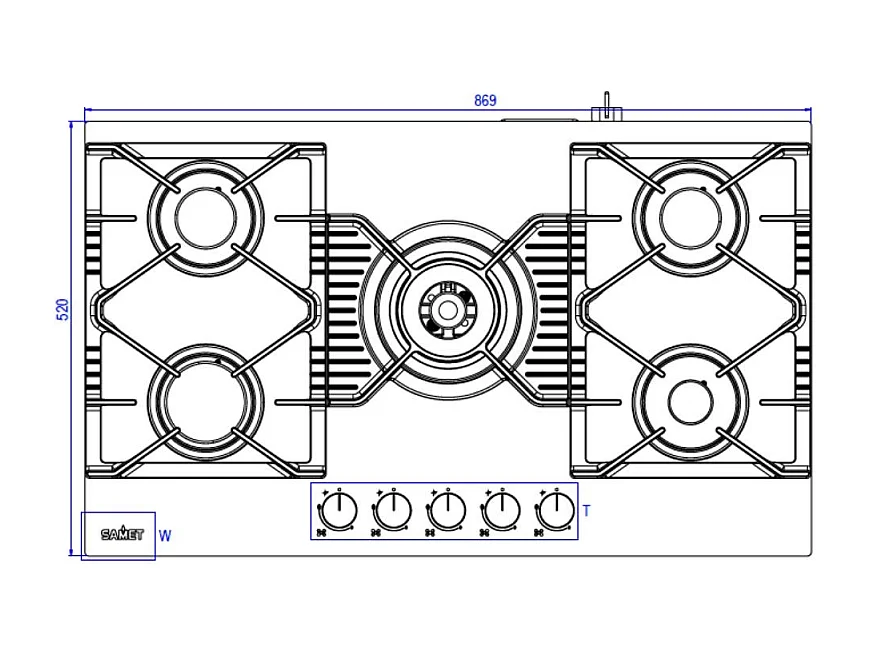 Piano cottura Samet Zacinto 90 a gas da incasso 5 fuochi 90 cm. in vetro temperato satinato opaco nero