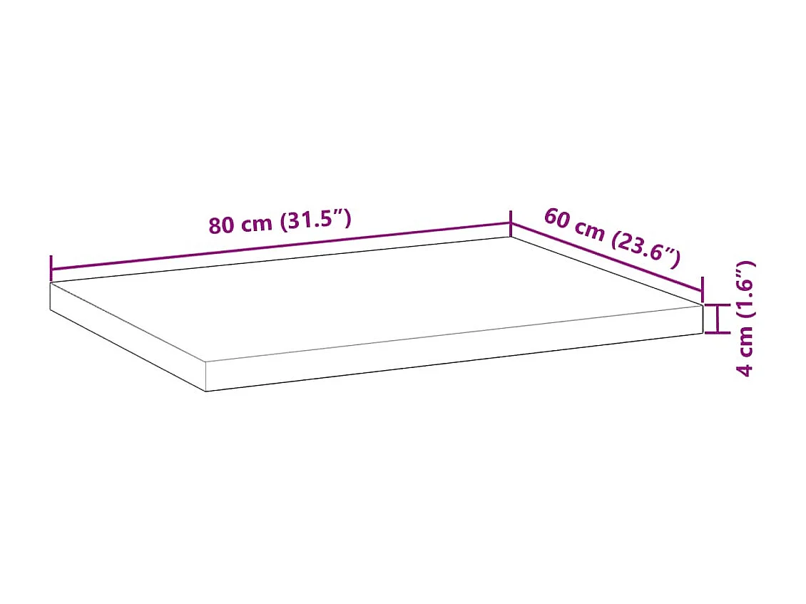 Piano da Bagno Non Trattato 80x60x4 cm Legno Massello di Acacia