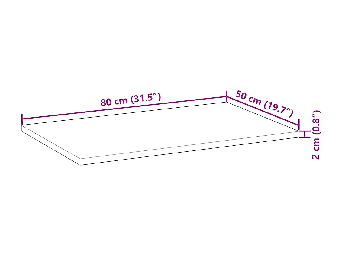 Piano da Bagno Non Trattato 80x50x2 cm Legno Massello di Acacia