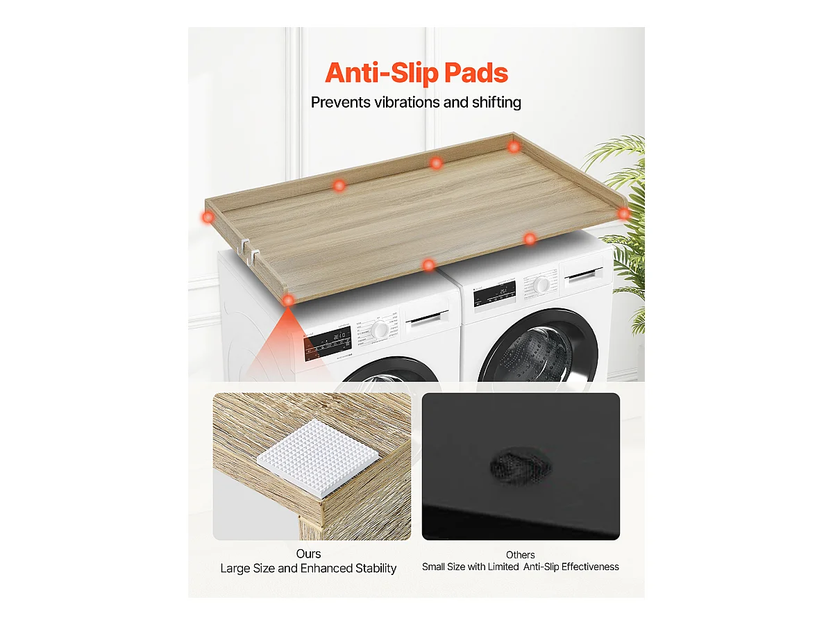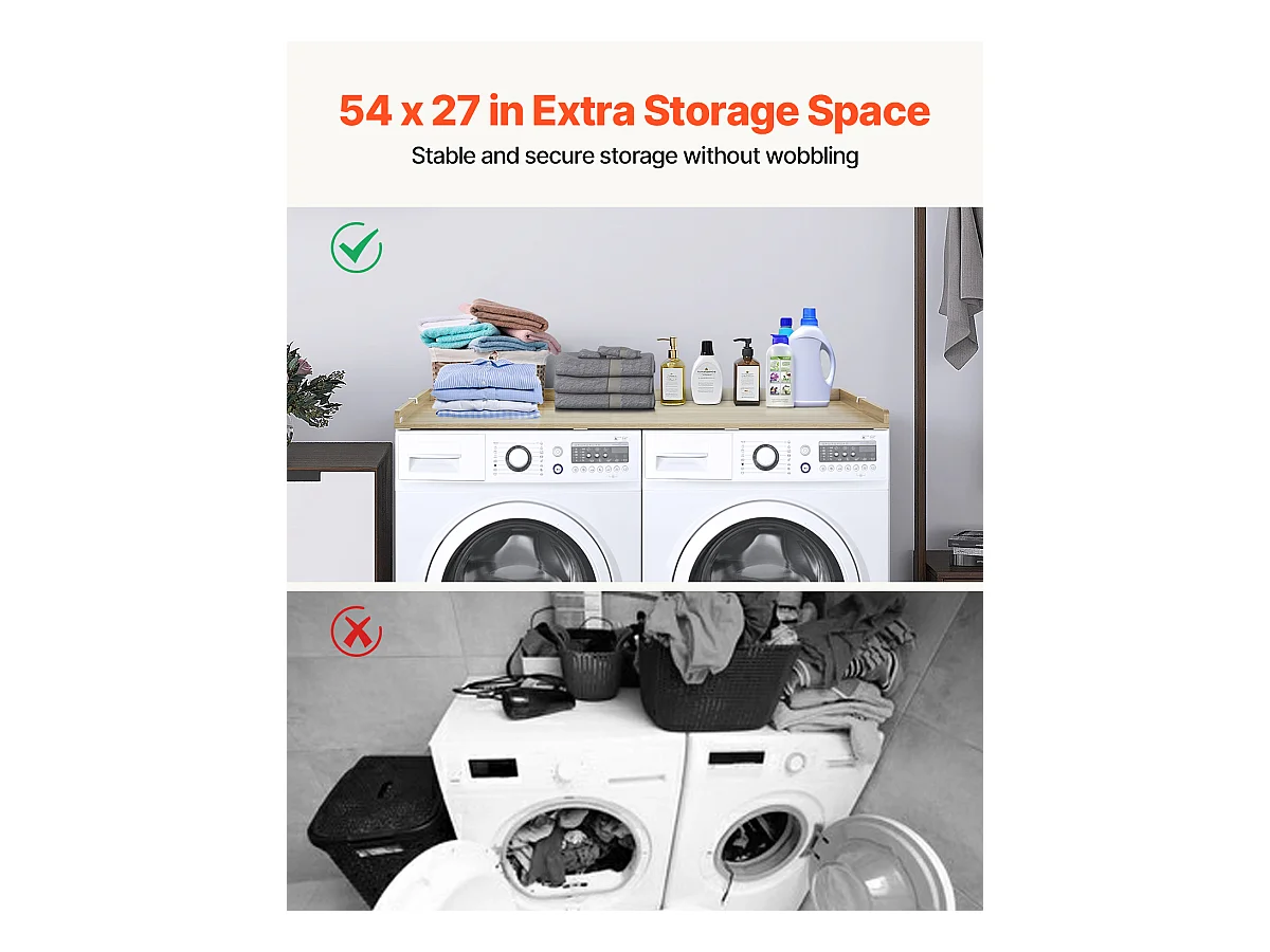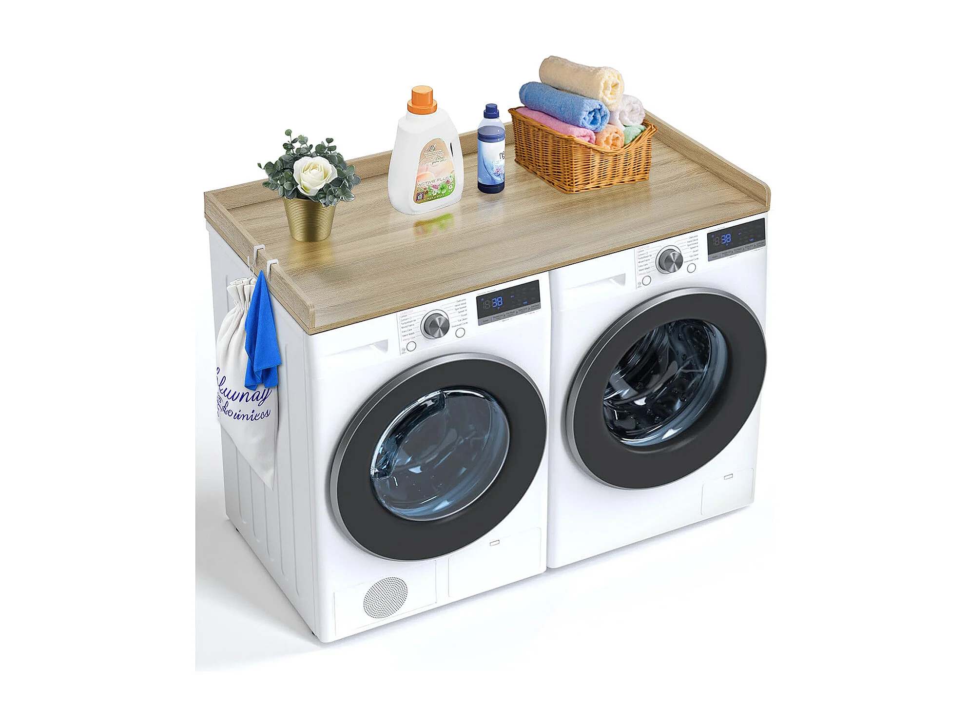 Piano di Appoggio per Lavatrice-Asciugatrice SucceBuy in Legno 137x69 CM, in Legno, Resistente all'Acqua con Cuscinetti Antiscivolo, per Organizzazione Lavaggio