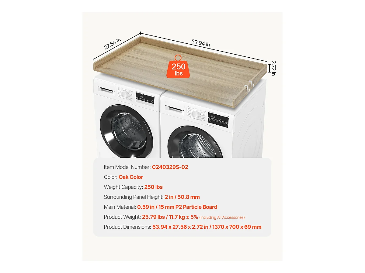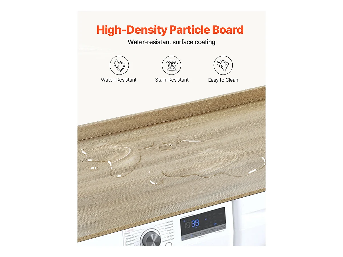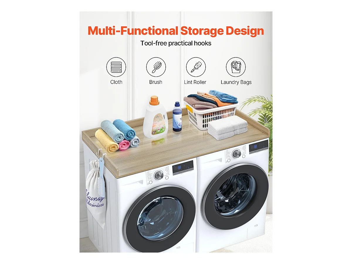 Piano di Appoggio per Lavatrice-Asciugatrice SucceBuy in Legno 137x69 CM, in Legno, Resistente all'Acqua con Cuscinetti Antiscivolo, per Organizzazione Lavaggio