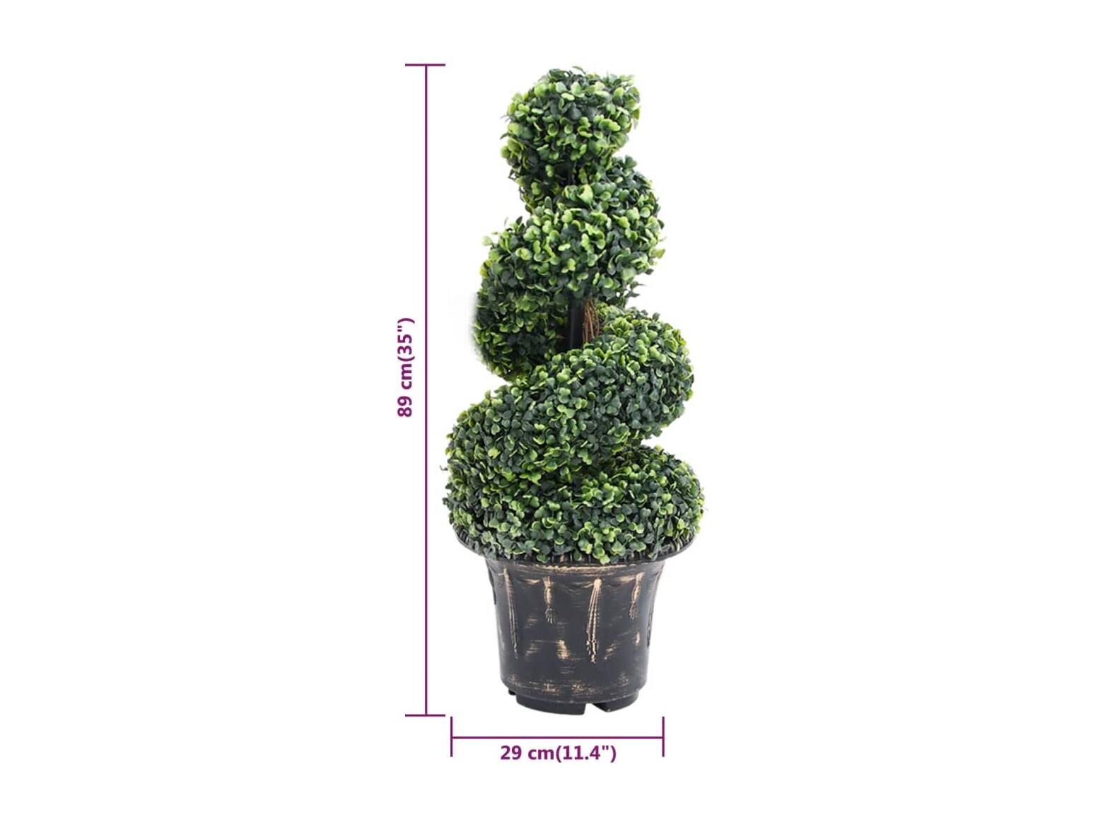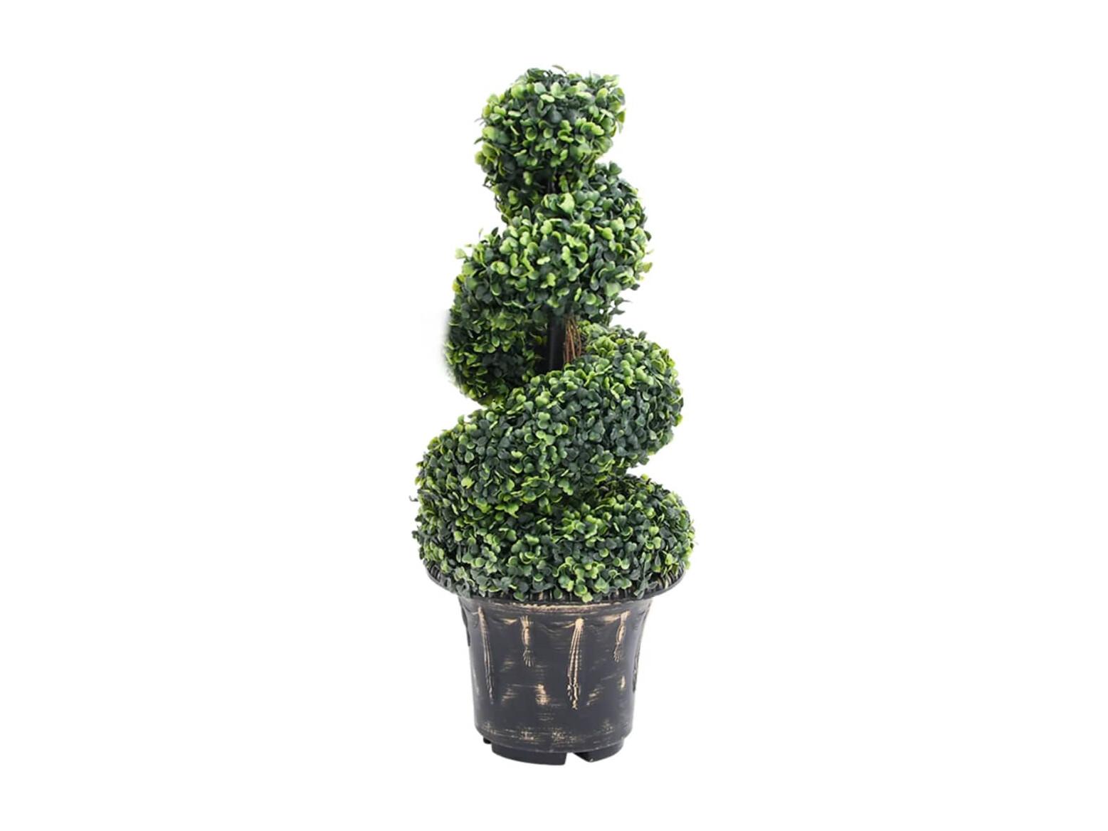 Pianta artificiale di bosso a spirale con vaso verde 89 cm
