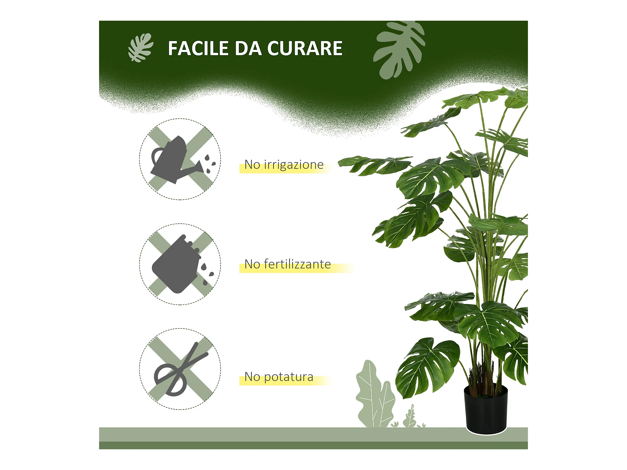 Pianta artificiale di monstera con vaso incluso per casa e giardino