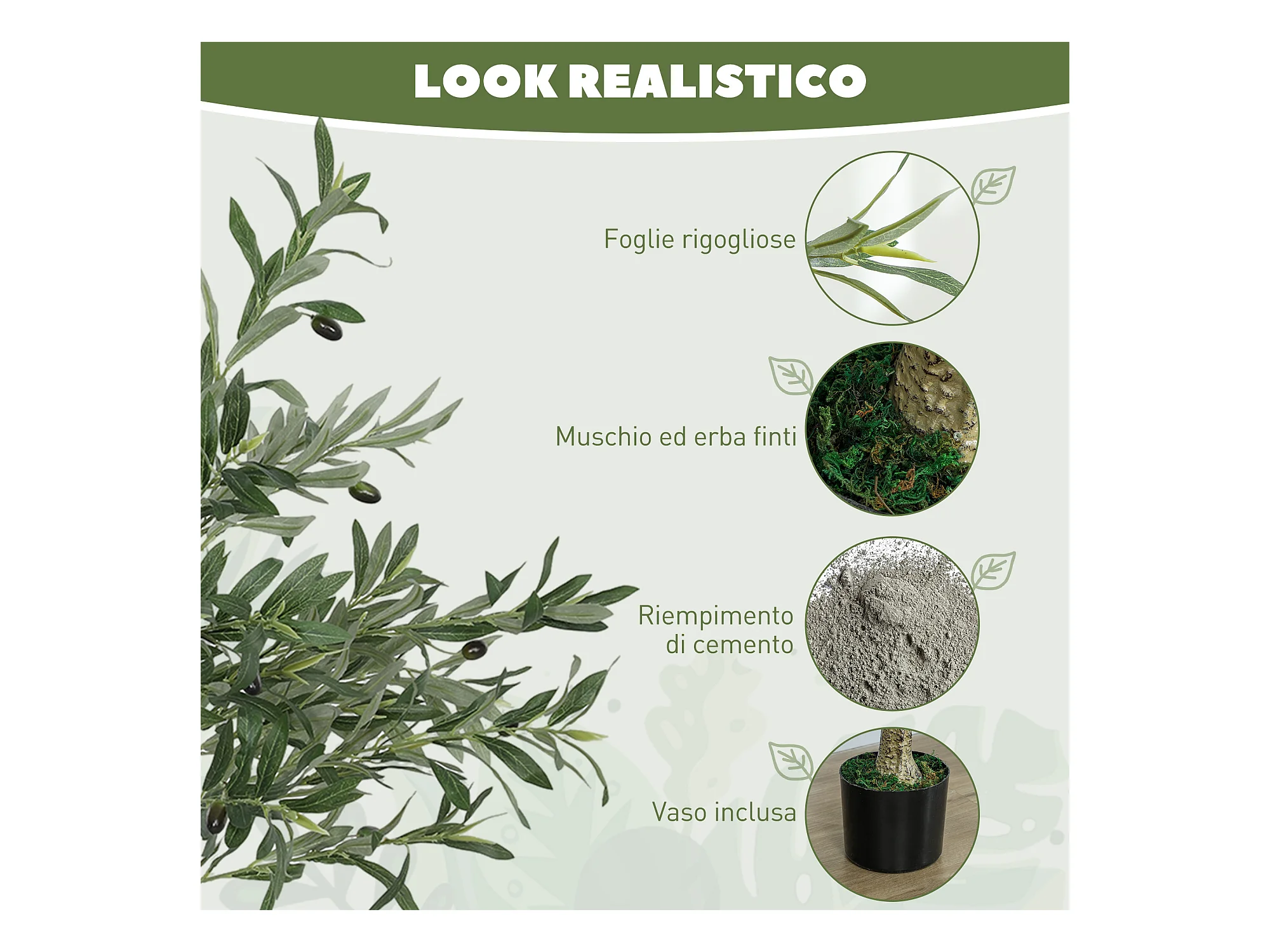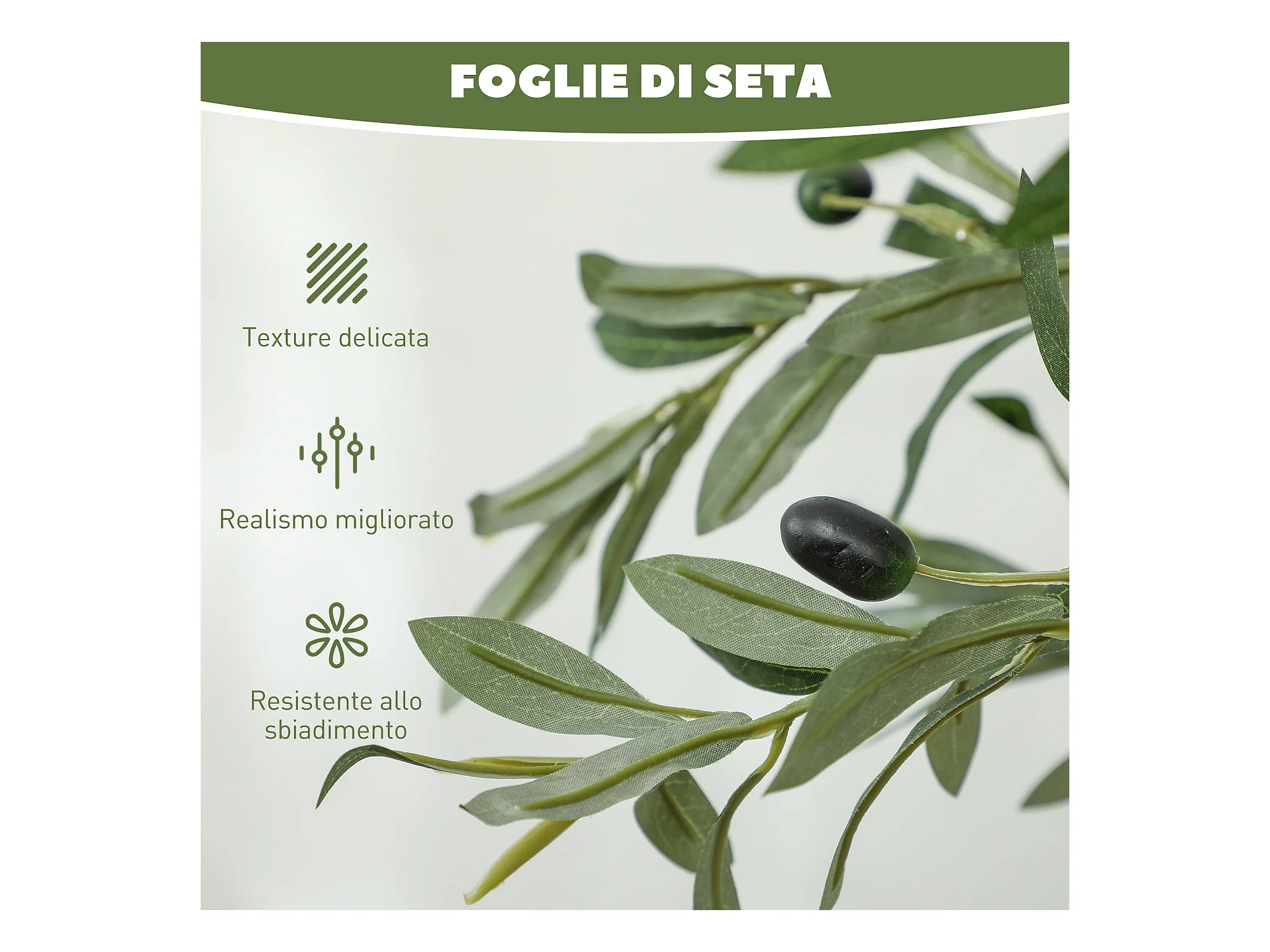 Pianta artificiale di olivo alta 120 cm con 450 foglie e 20 olive