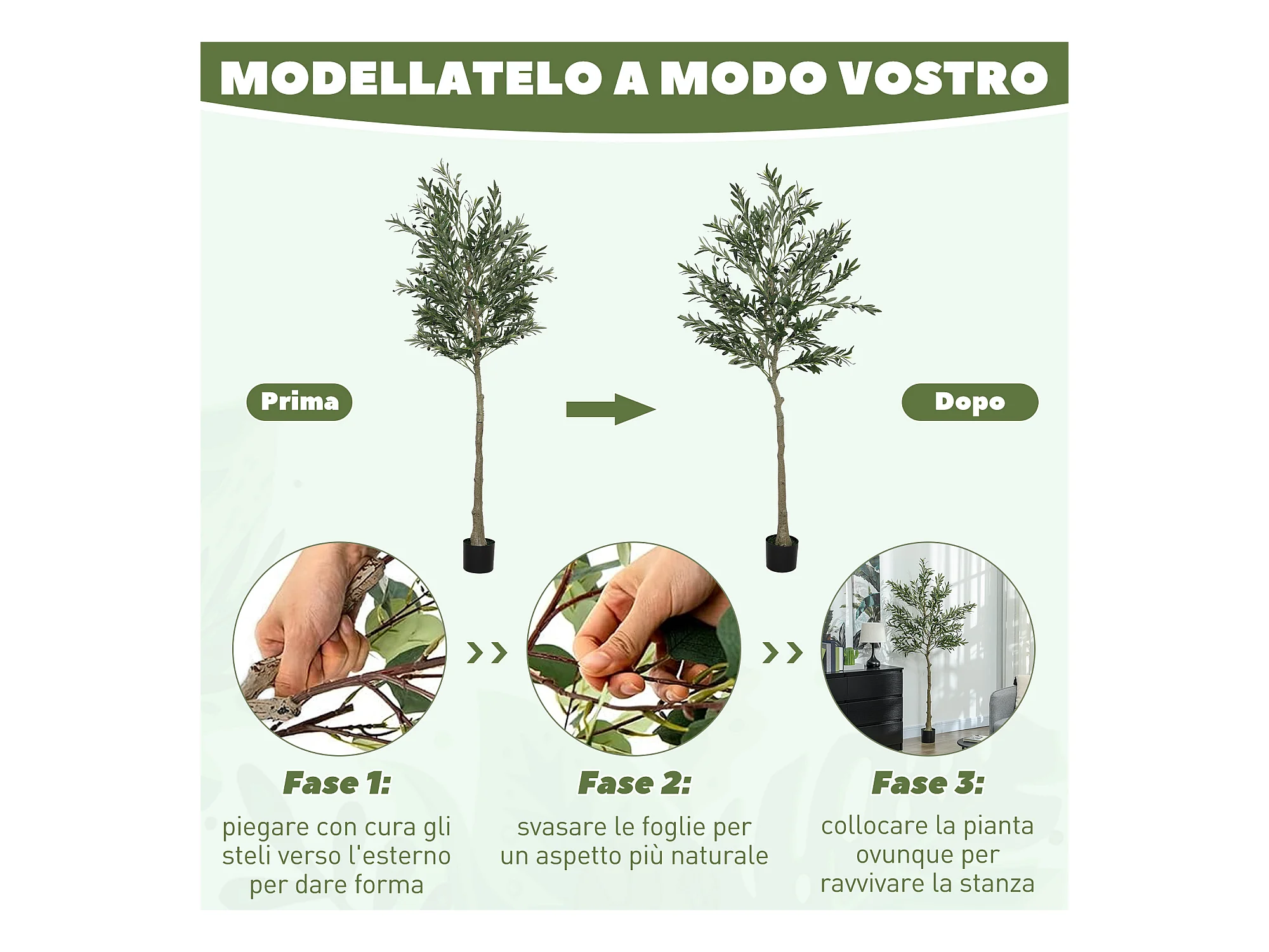 Pianta artificiale di olivo alta 180 cm con 900 foglie e 40 olive