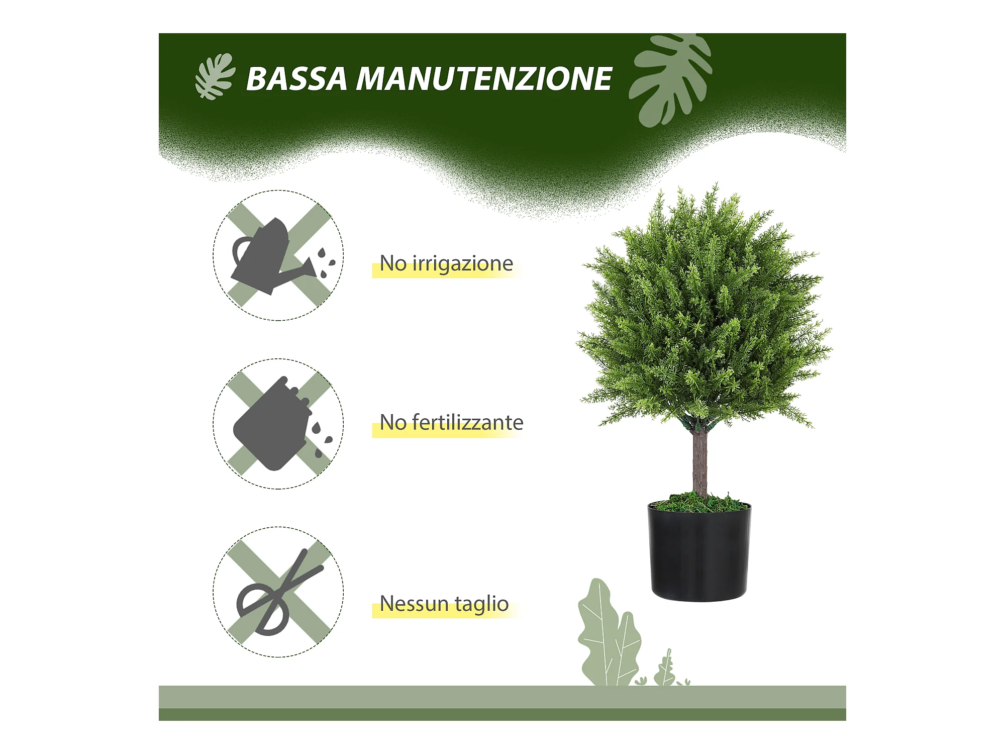 Pianta verde artificiale 95 cm da 33 foglie per interni ed esterni