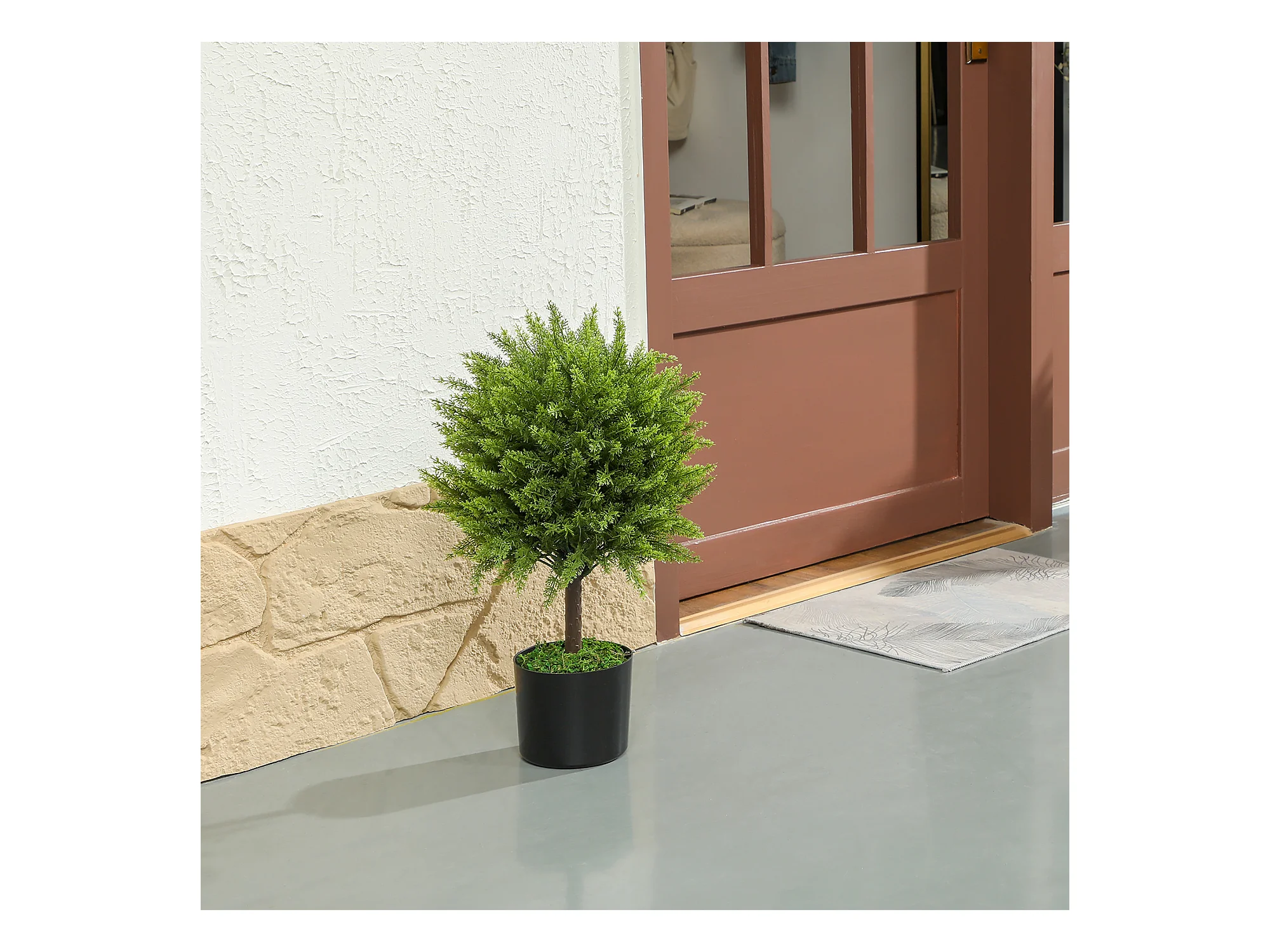 Set 2 piante finte di cipresso con vasi muschio e cemento