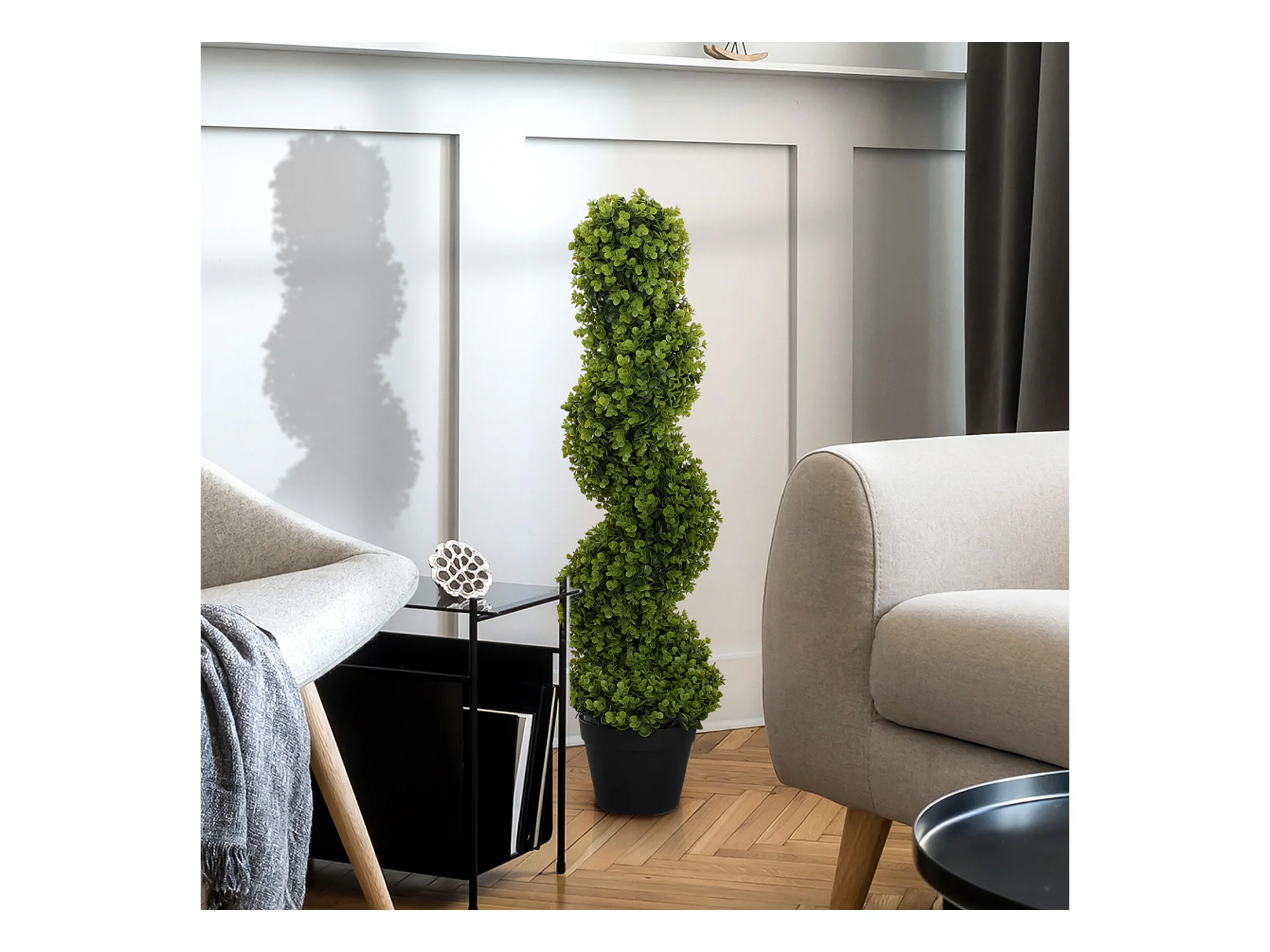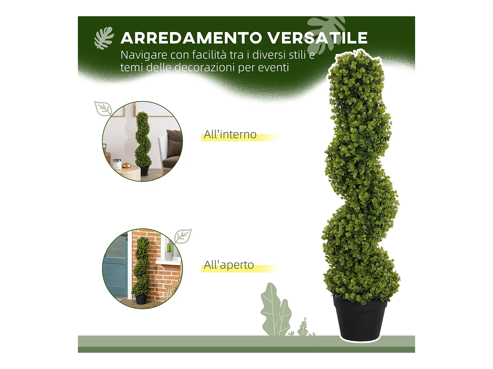 Pianta finta di eucalipto a spirale con vaso incluso alta 90 cm