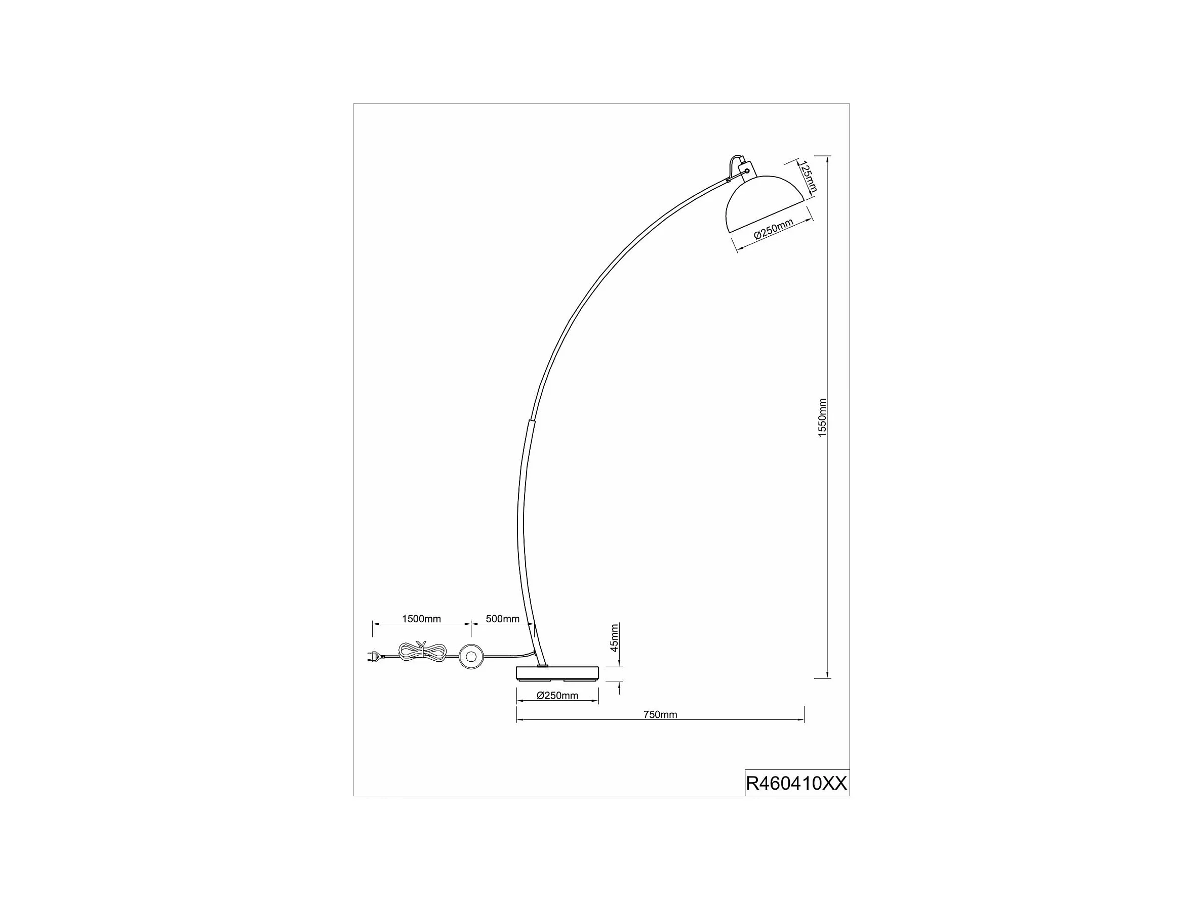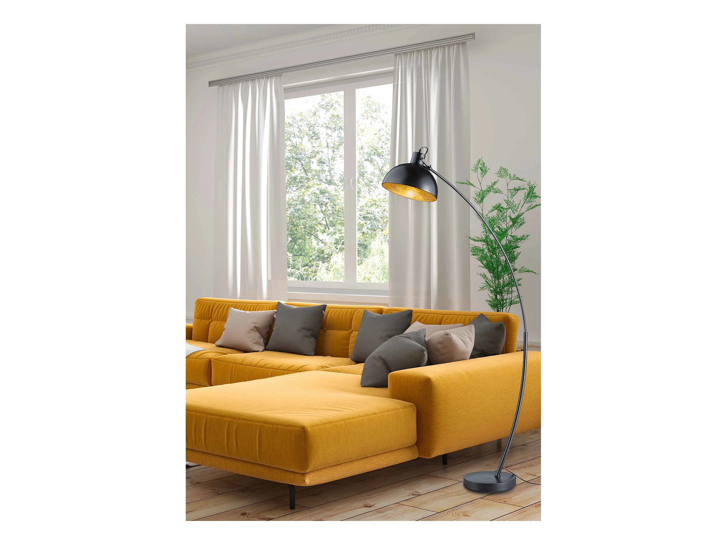 Piantana ad arco, metallo, nero e oro, H 150 cm, Recife