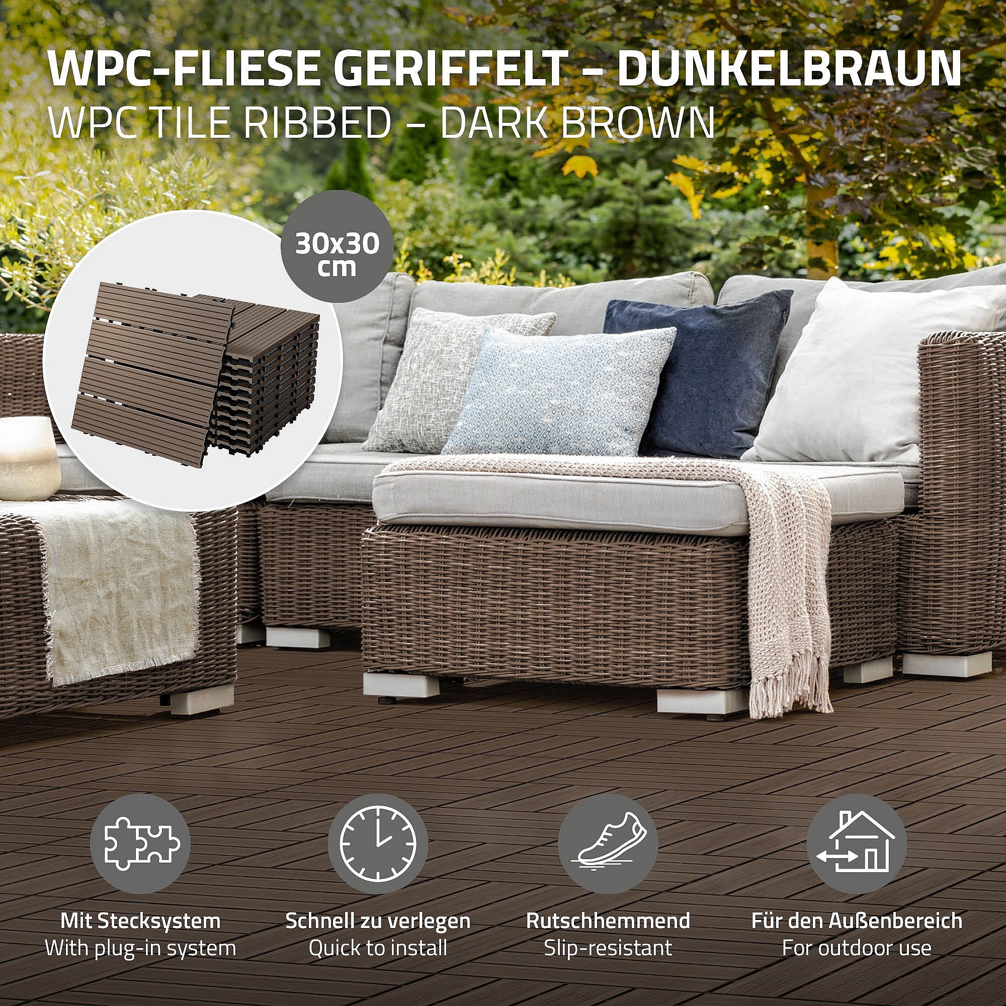 Piastrelle per terrazze 33xWPC, , piastrelle a incastro, 30x30cm, marrone scuro, 3m²