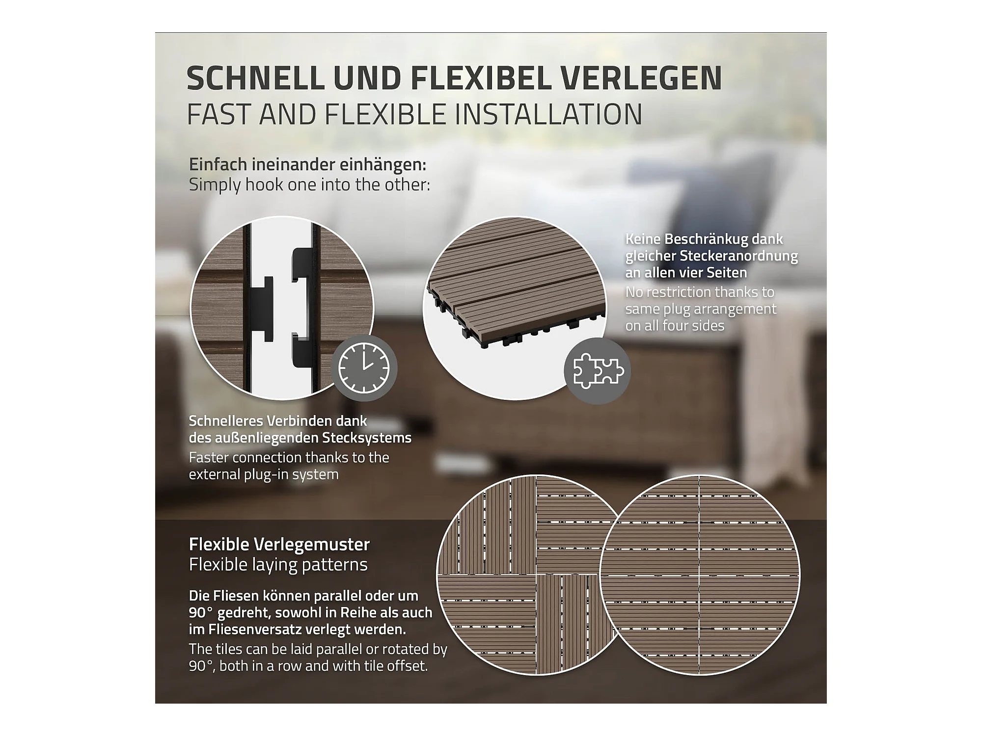 4x WPC decking tiles balcone piastrelle click legno 60x30cm ECD Germany