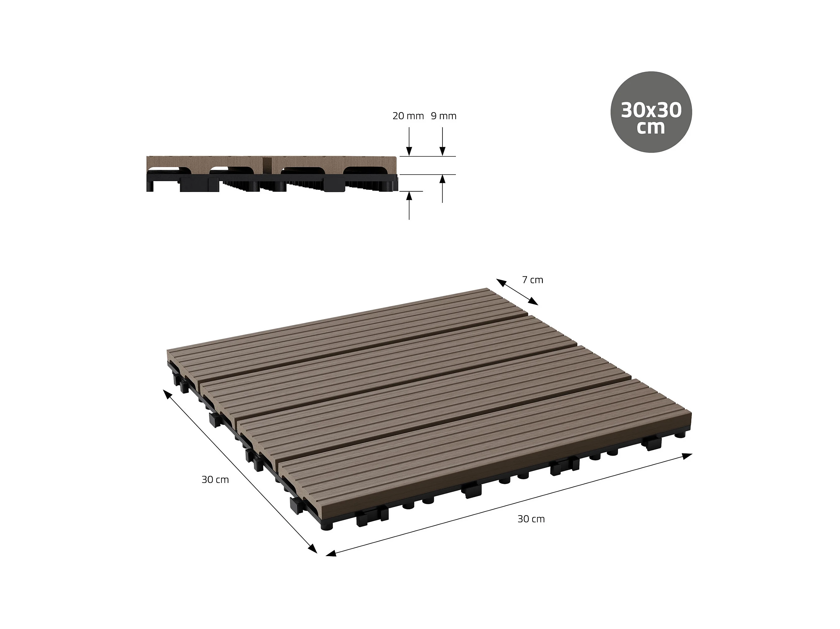 Piastrelle per terrazze 33xWPC, , piastrelle a incastro, 30x30cm, marrone scuro, 3m²