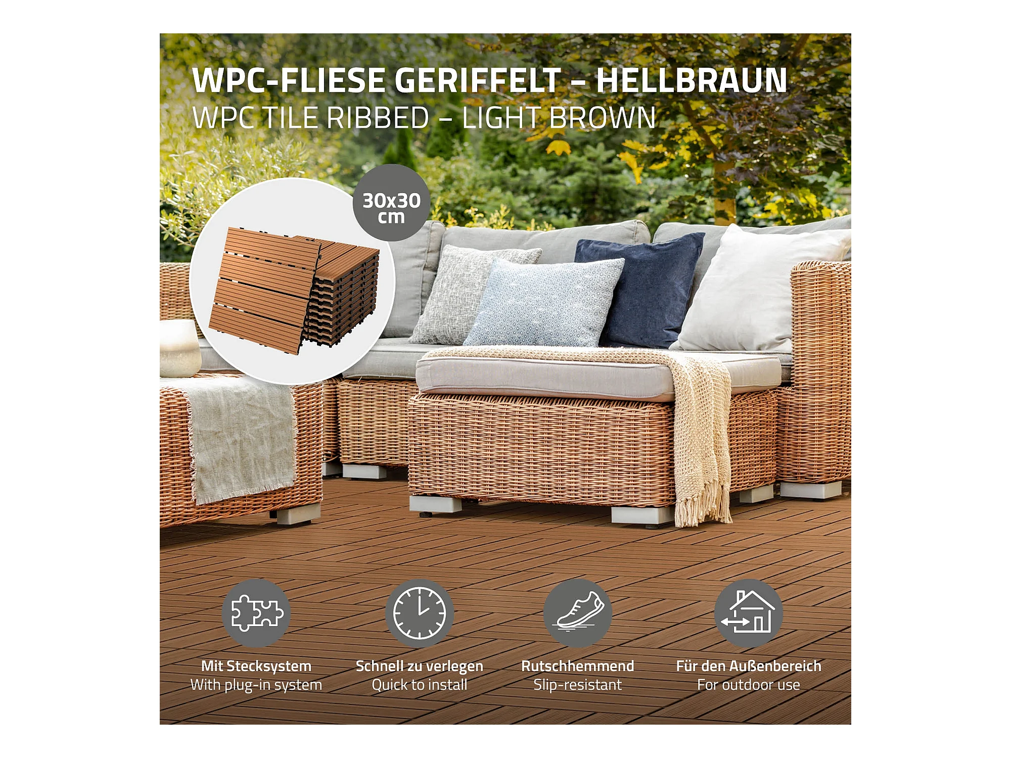 55x Piastrelle per terrazze in WPC, 30 x 30 cm, marrone chiaro, 5 m²