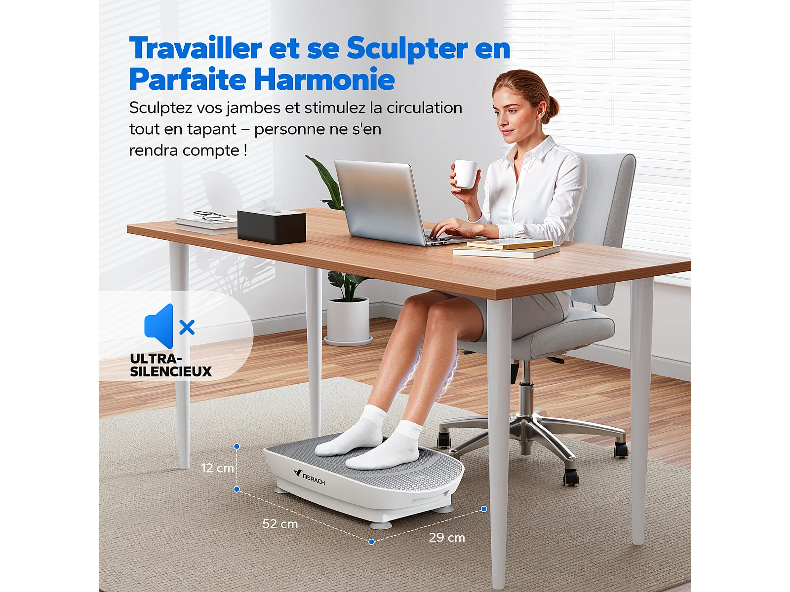Piattaforma vibrante con telecomando - Merach, tonificazione muscolare, controllo automatico della velocità, Bluetooth integrato