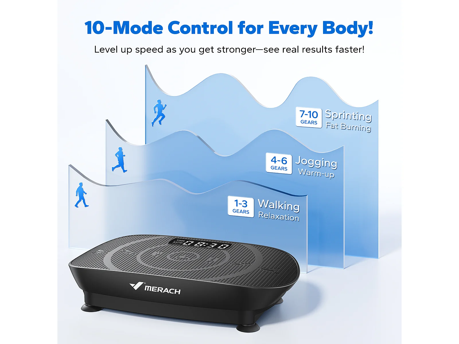 Piattaforma vibrante MERACH, telecomando, schermo LED, Bluetooth, 10 velocità, 11 programmi, silenziosa, capacità 200KG