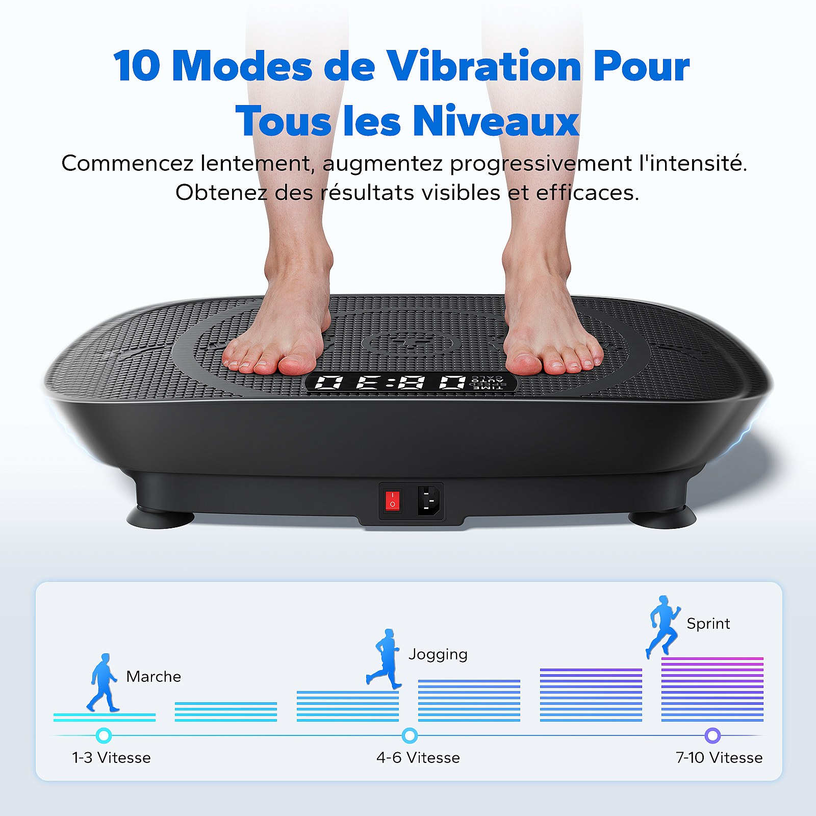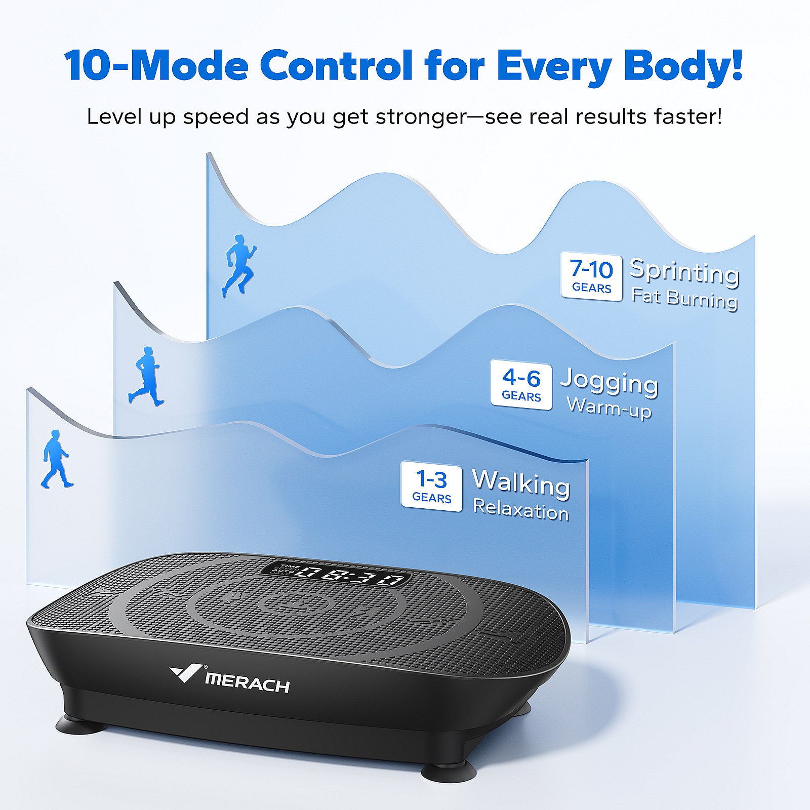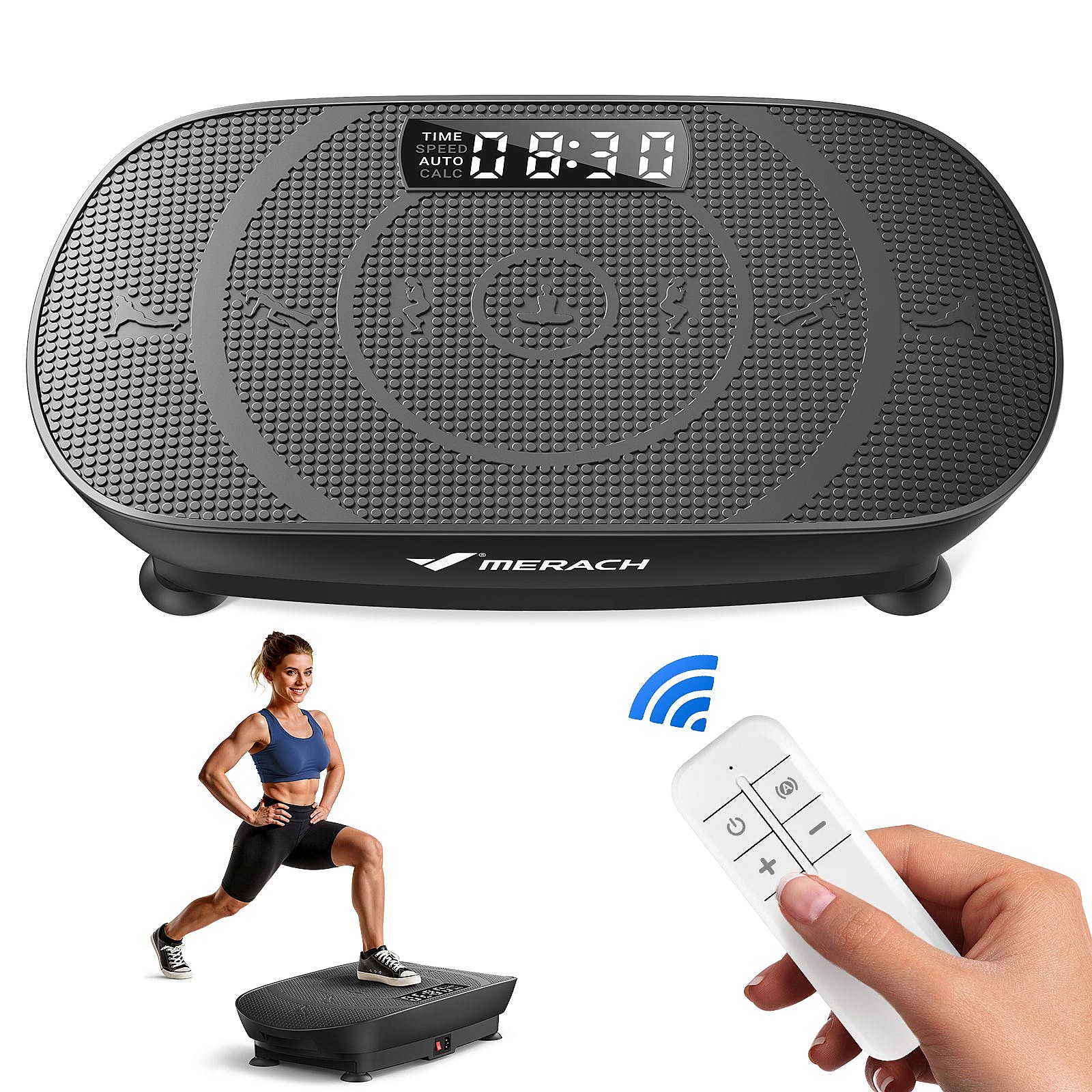 Piattaforma vibrante MERACH 10 velocità, LED, telecomando, fitness a vibrazione, perdita di peso, bodybuilding, Nero, MAX 150KG