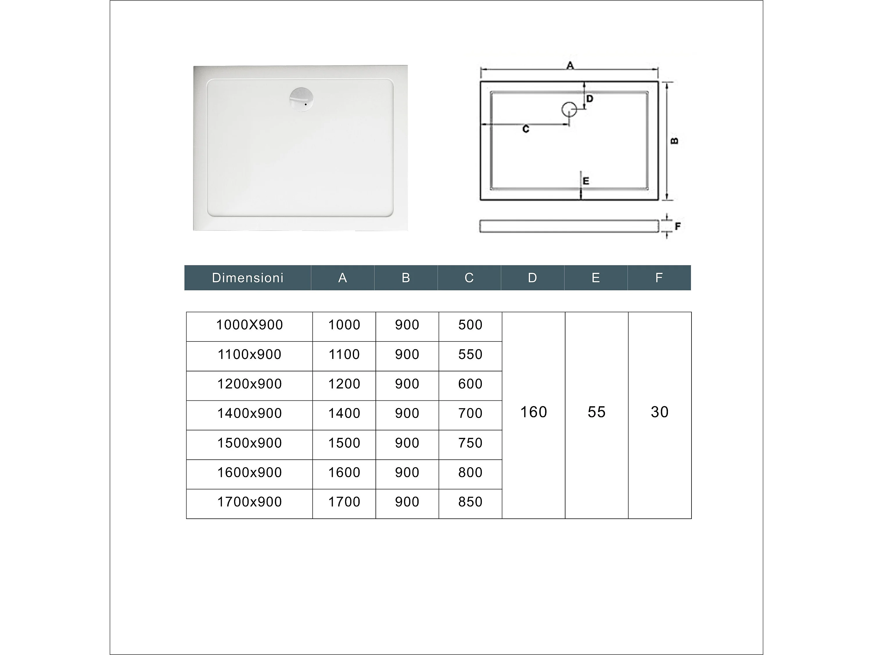 Piatto Doccia 120x90cm Bianco Spessore di 3 cm in Pietra Artificiale e Resina Minerale Mista Piletta Extra Piatta Sottile e Tubo inclusi