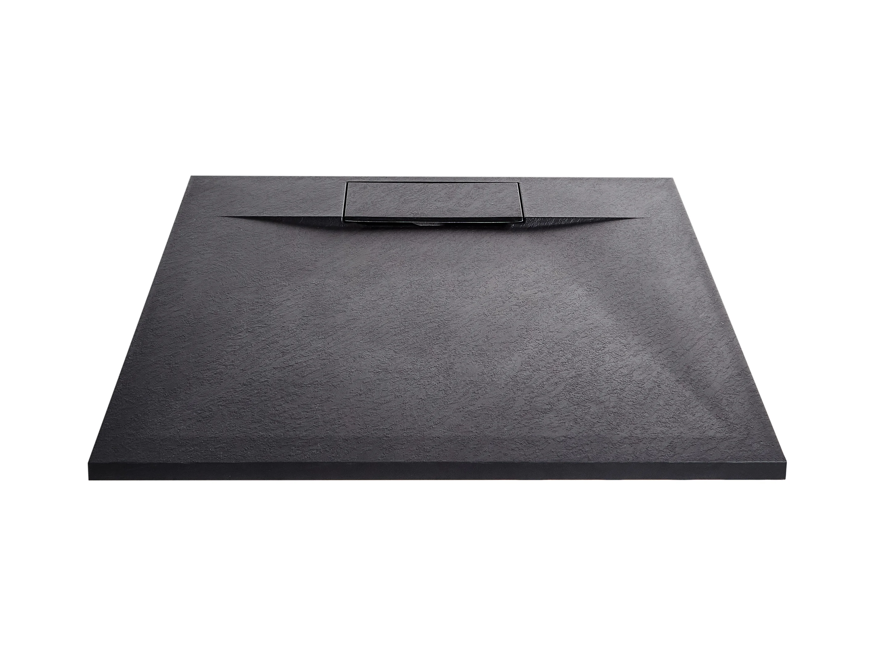 Piatto Doccia Quadrato 90x90x3cm in Pietra Vulcanica e Resina Mista Finitura Pietra Nera Ruvida Ultraslim Antiscivolo Antibatterico