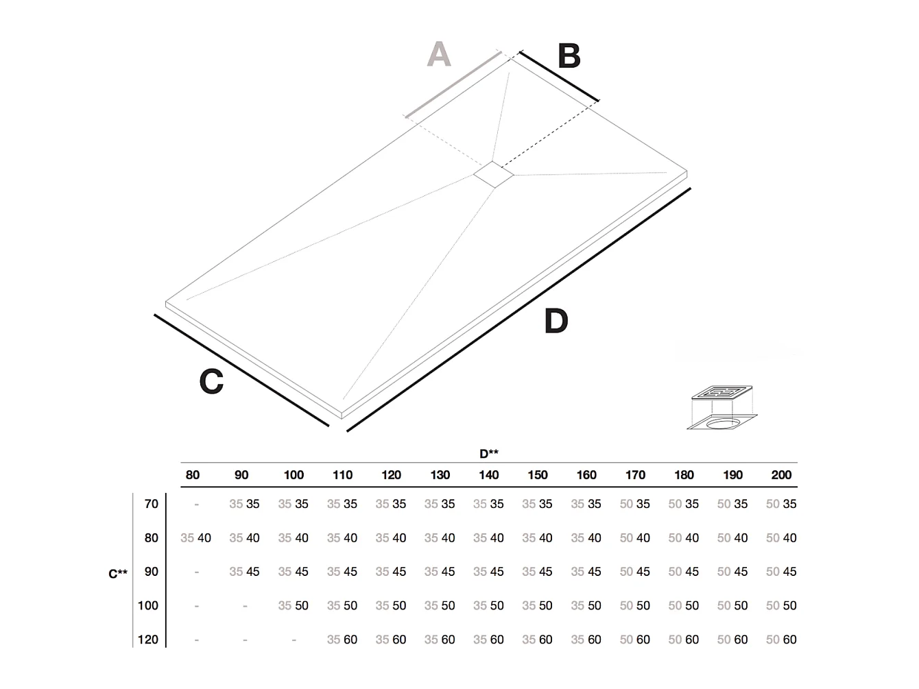 Piatto doccia ultrasottile 90 x 160 cm SALVI in SoliCast® finitura ardesia nero