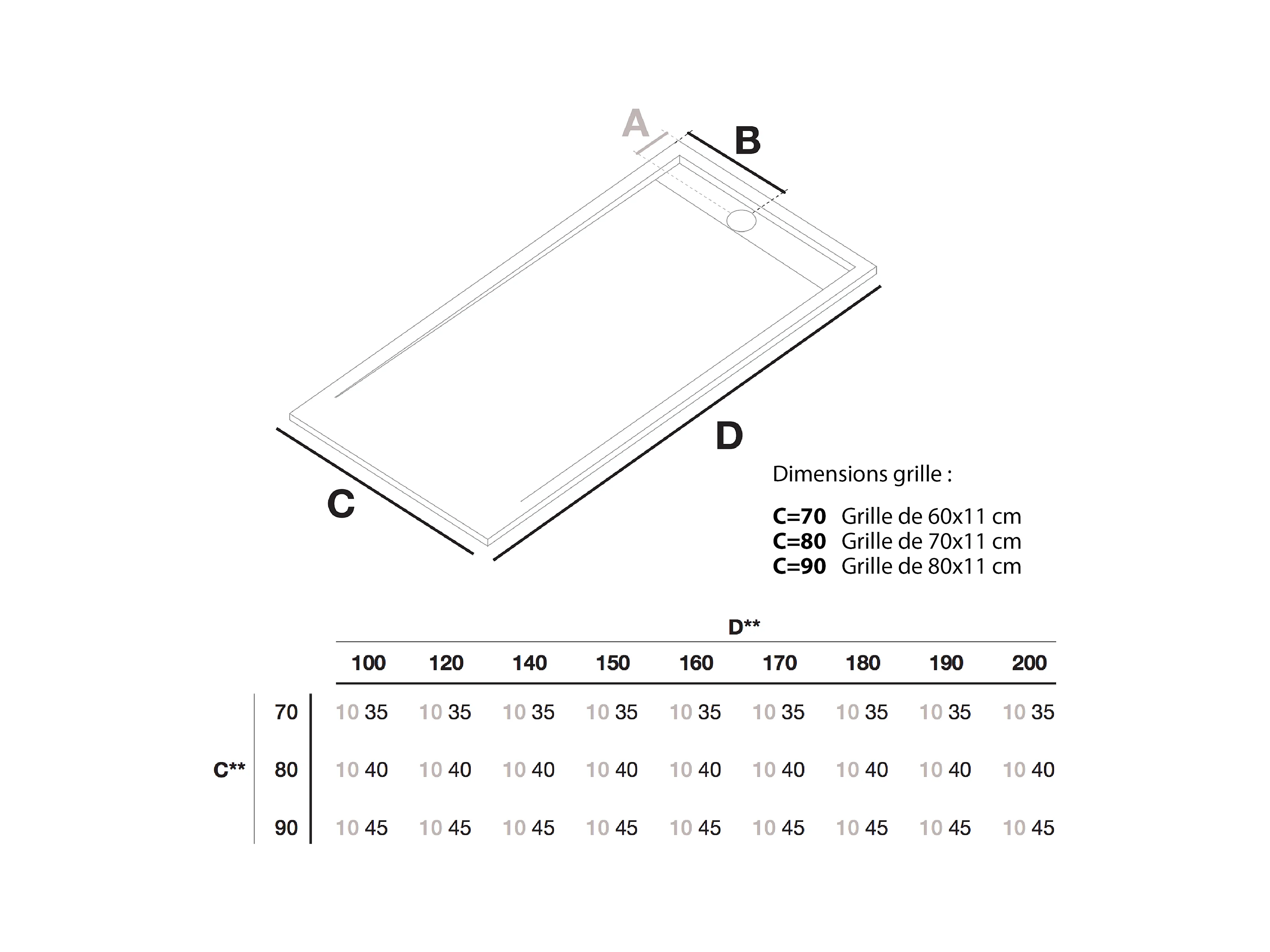 Piatto doccia ultrasottile 70 x 120 cm COSME in resina finitura ardesia nero