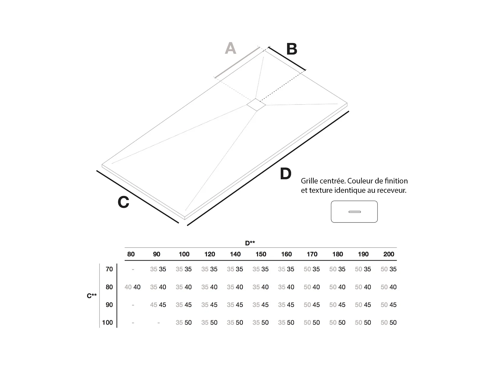 Piatto doccia ultrasottile 70 x 140 cm PURE in resina finitura ardesia beige