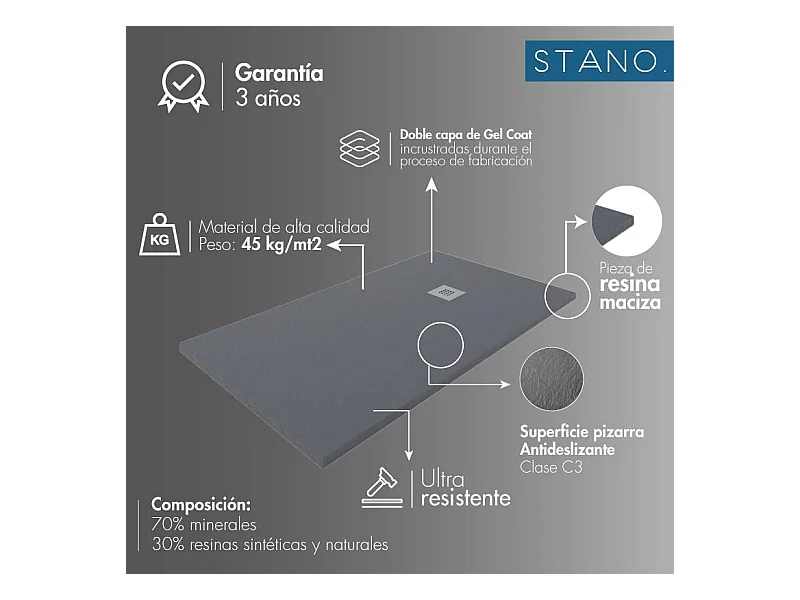 Piatto doccia ultrasottile 80 x 110 cm MARIANA in resina finitura ardesia sabbia