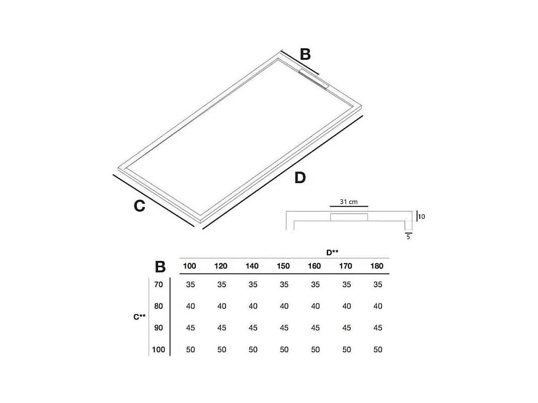 Piatto doccia ultrasottile 80x180cm LUX in resina finitura ardesia beige