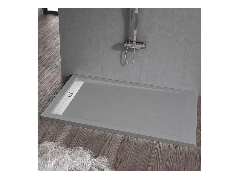 Piatto doccia ultrasottile 90 x 180 cm COSME in resina finitura ardesia cemento