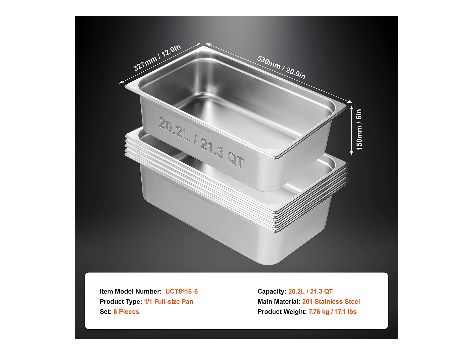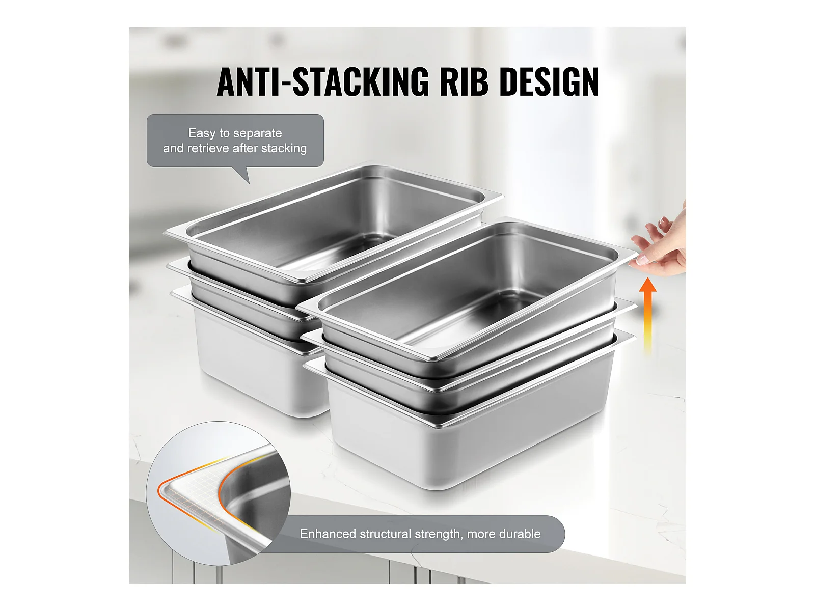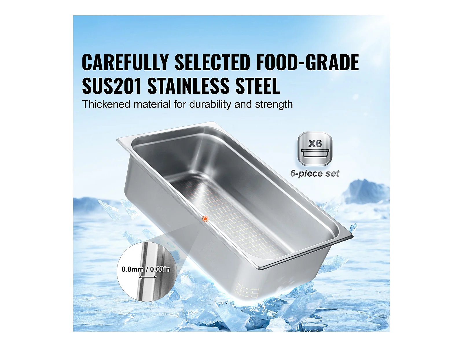 Contenitore Gastronorm SucceBuy GN 1/2, Recipiente per Ristorazione in Acciaio Inossidabile 6PCs 6 L, Contenitore Inox Alimentare Profondità 9,9 cm, Antiaderente