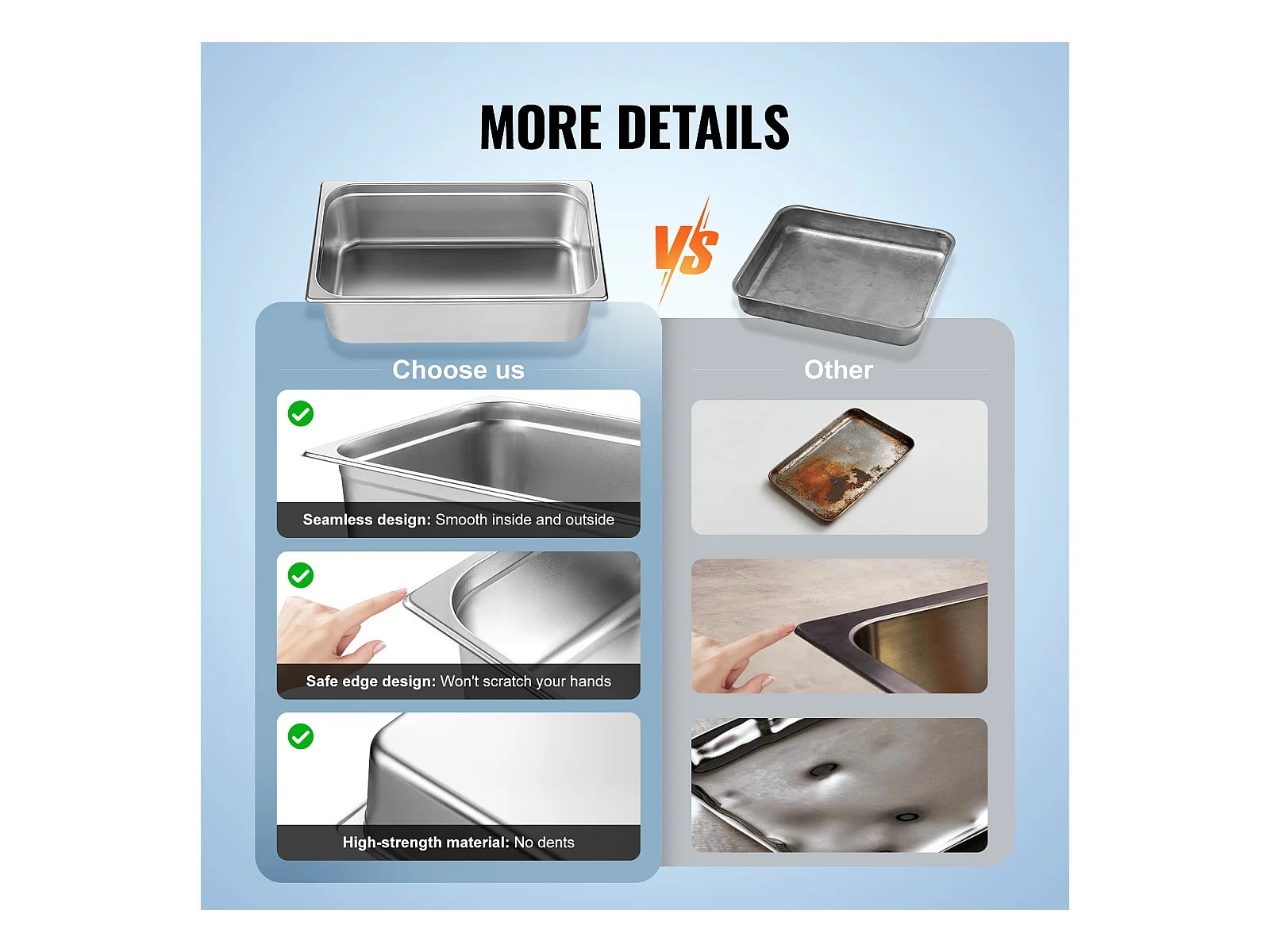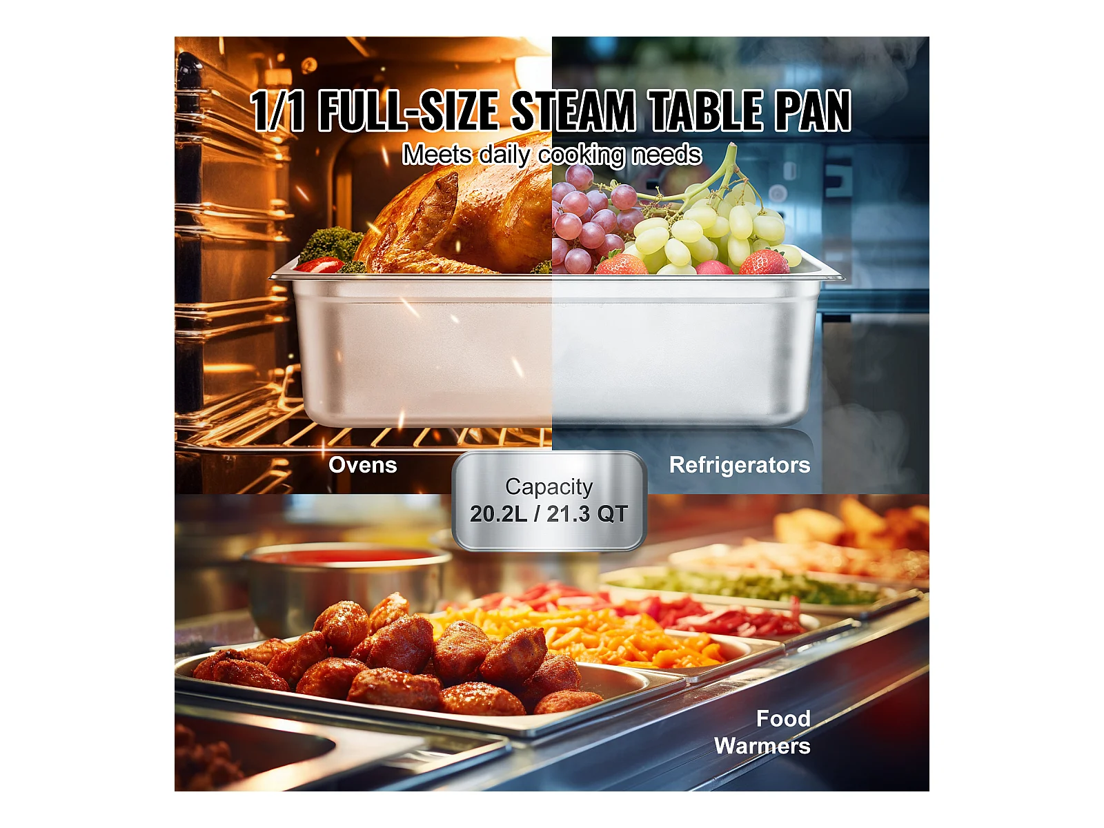 Piatto Piatto SucceBuy Pentola a Vapore Full Size Hotel Pan, in Acciaio Inossidabile, 10.2CM di Profondità