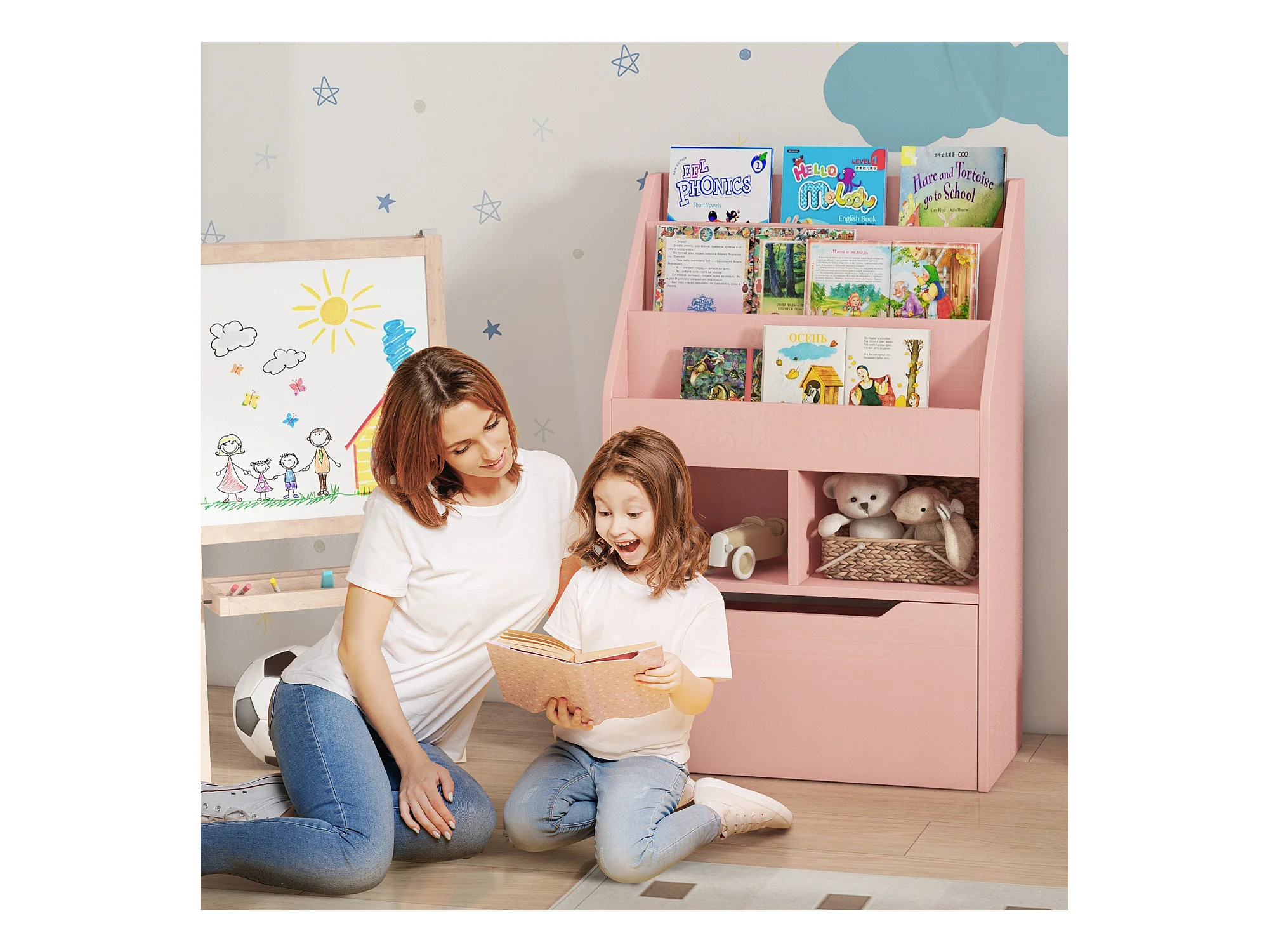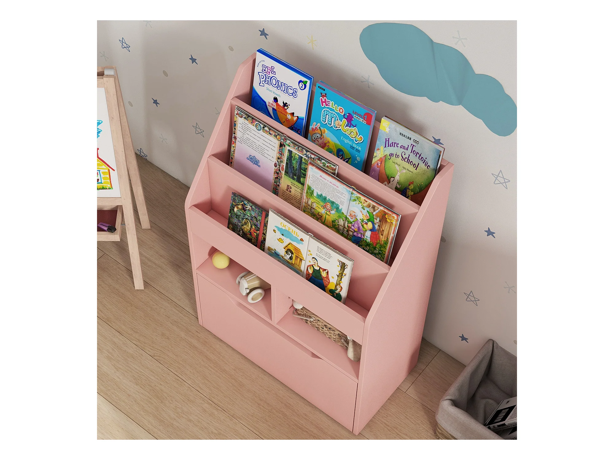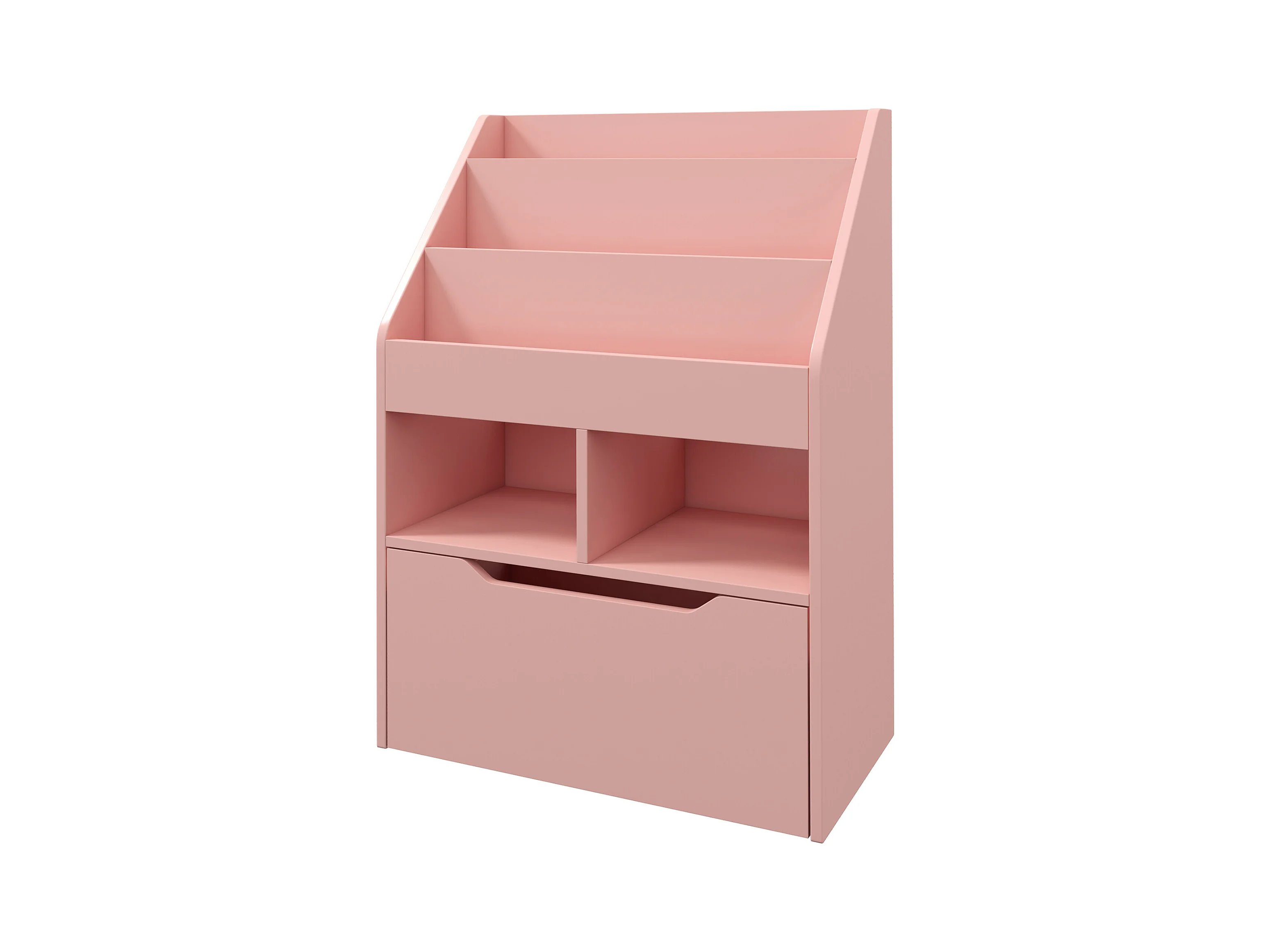 Piccola libreria per bambini con ripiani e cassetto in mdf rosa