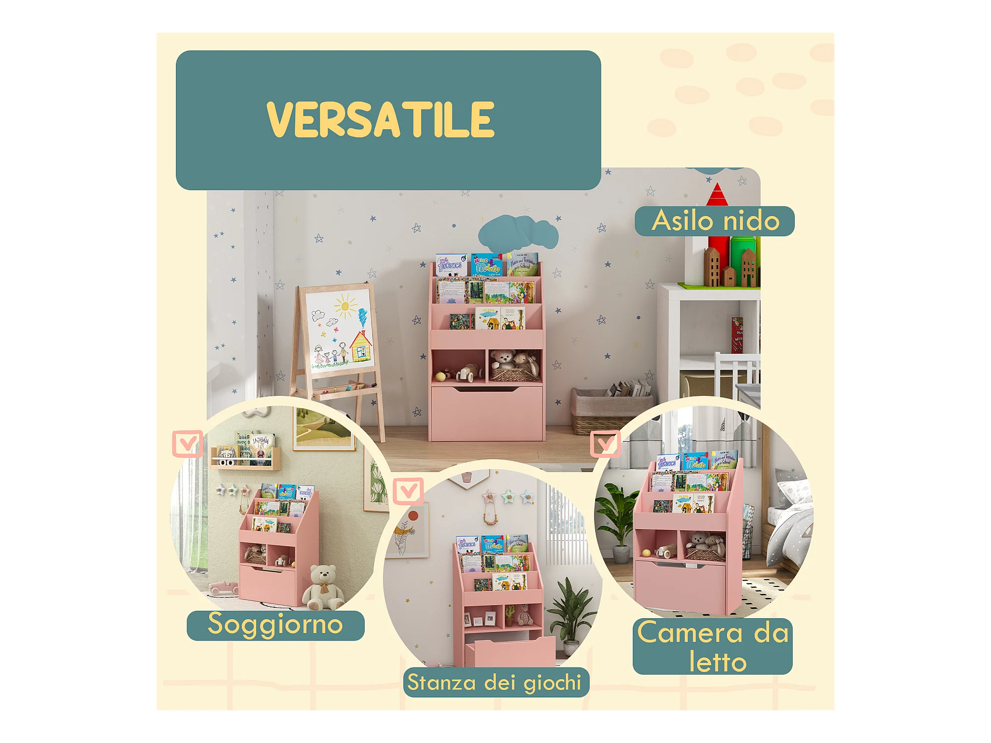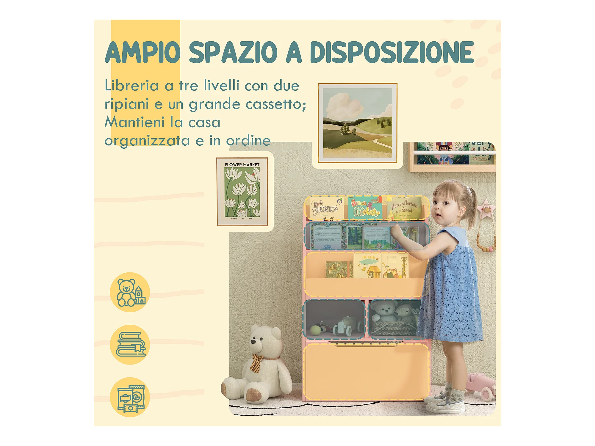 Libreria scaffale portagiochi per cameretta bambini mdf p2 rosa