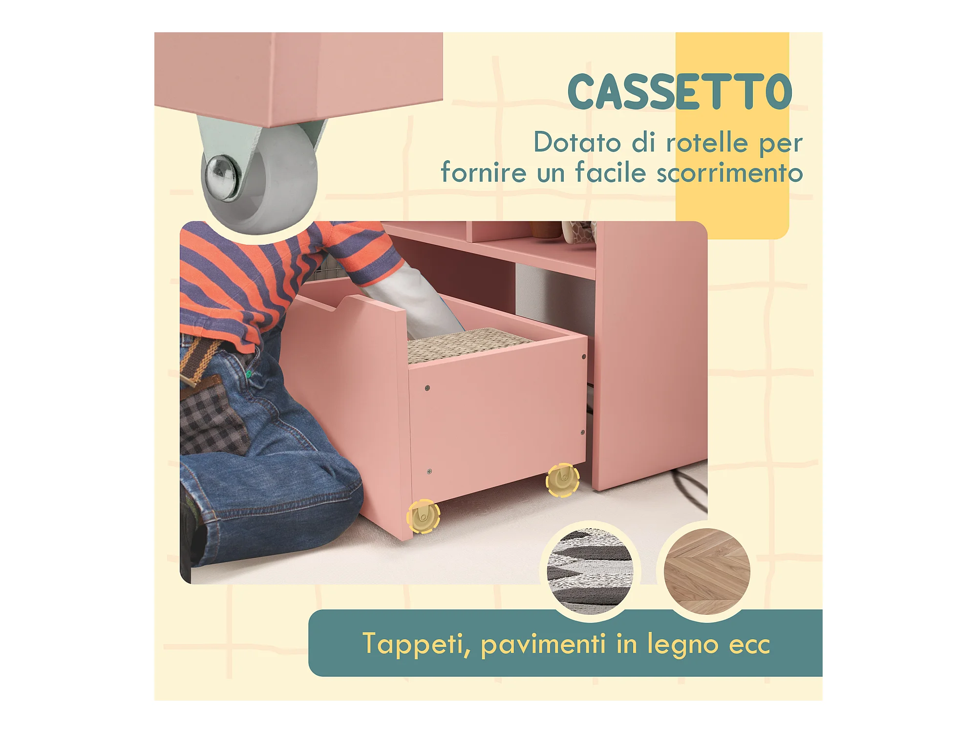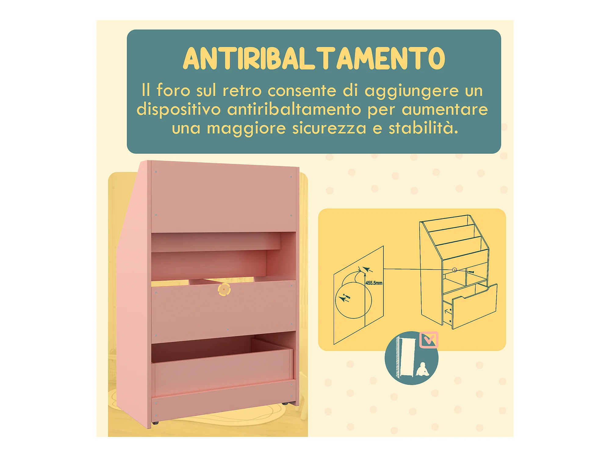 Contenitore per bambini, 3 ripiani e 2 vani portaoggetti, rosa
