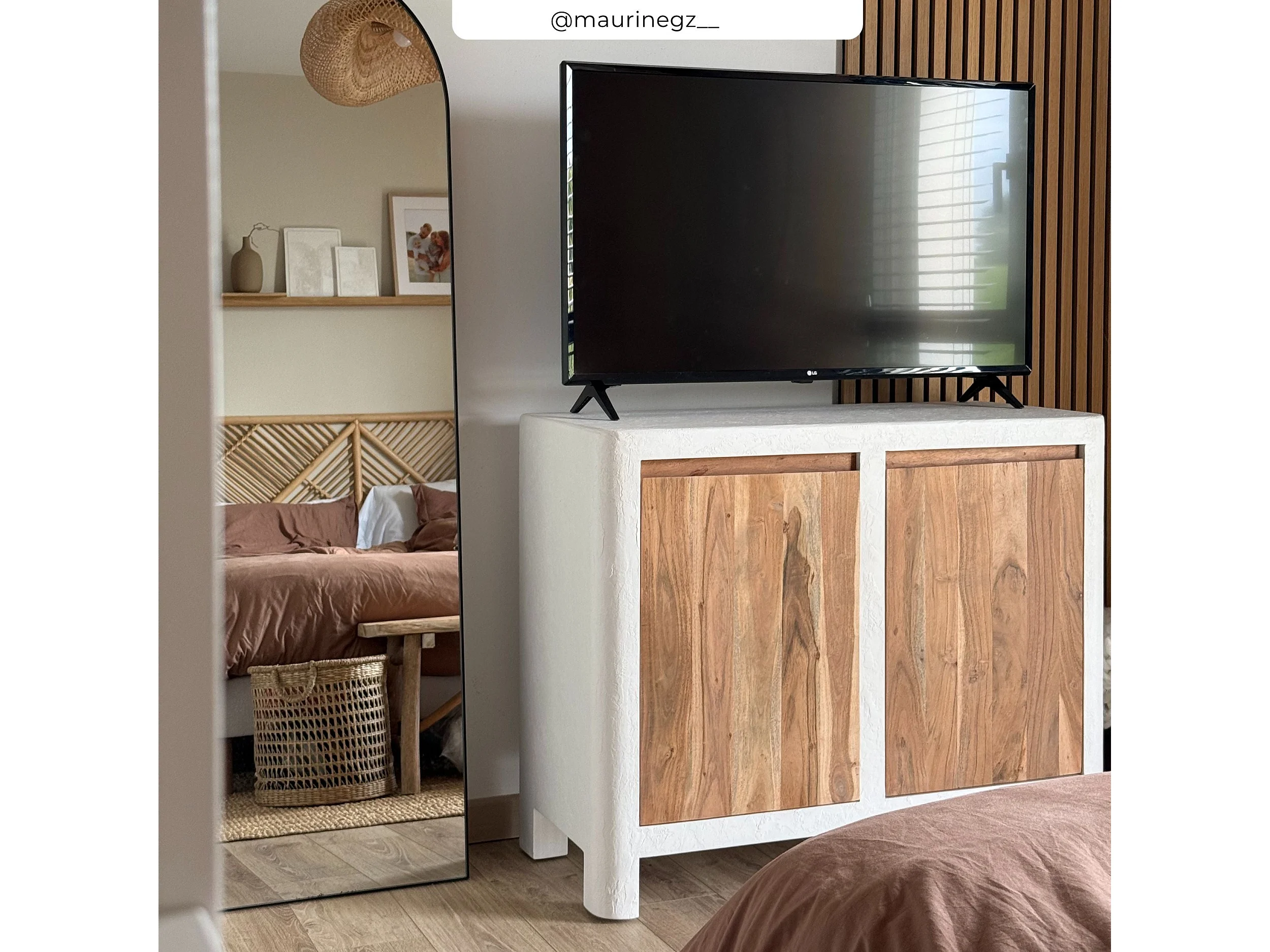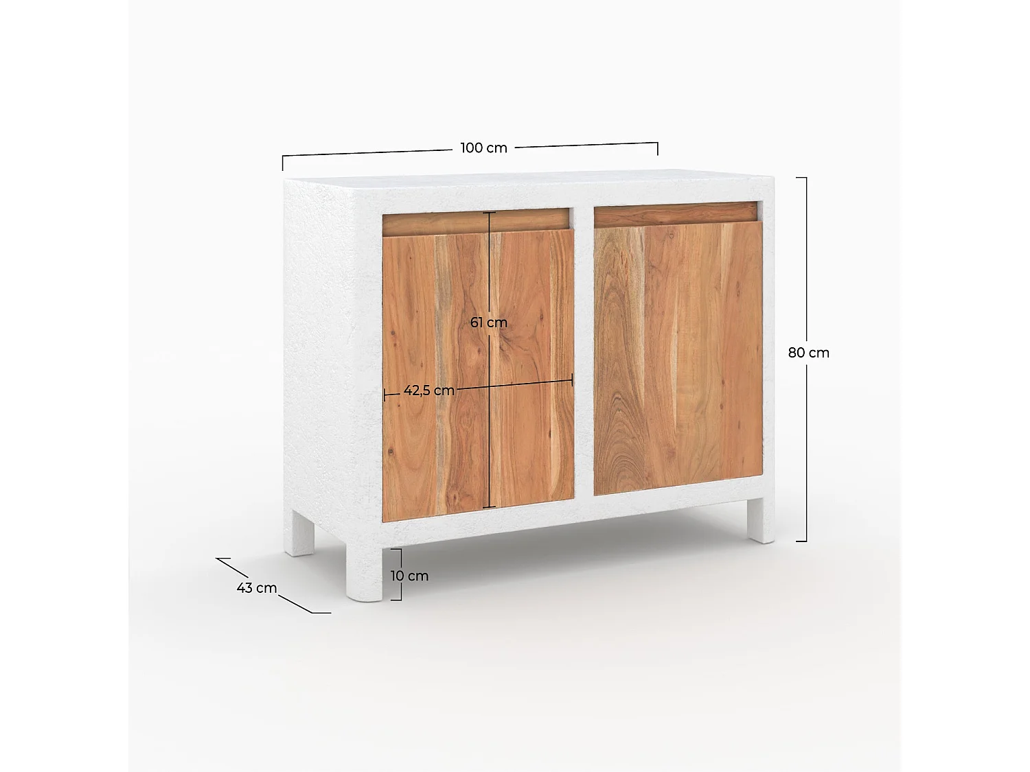 Piccolo buffet in calcestruzzo bianco sporco e legno di acacia - Tierra