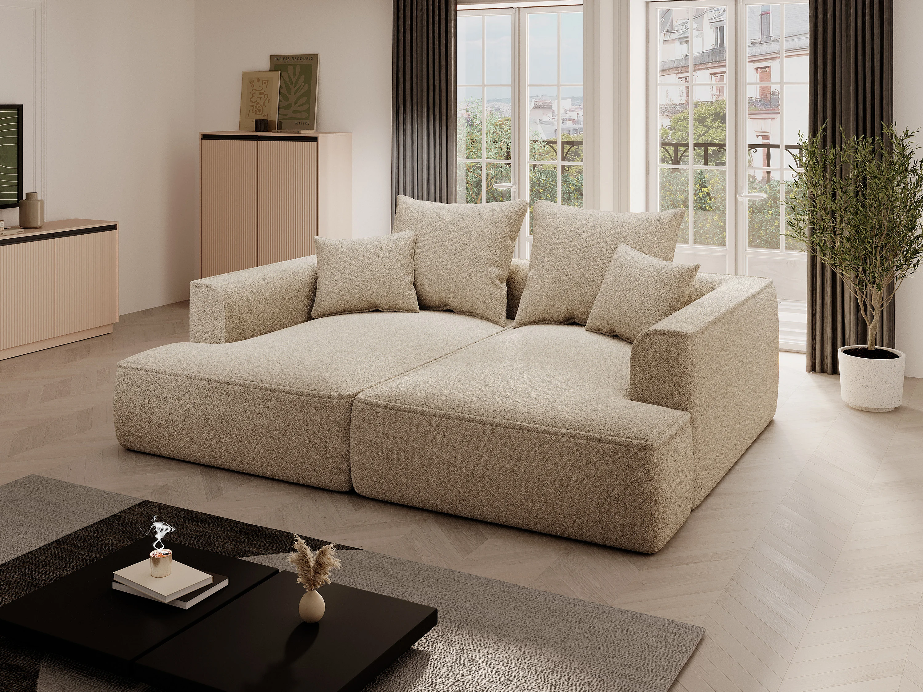 Divano 3 posti seduta comfort e profonda in tessuto ciniglia talpa - PINETA