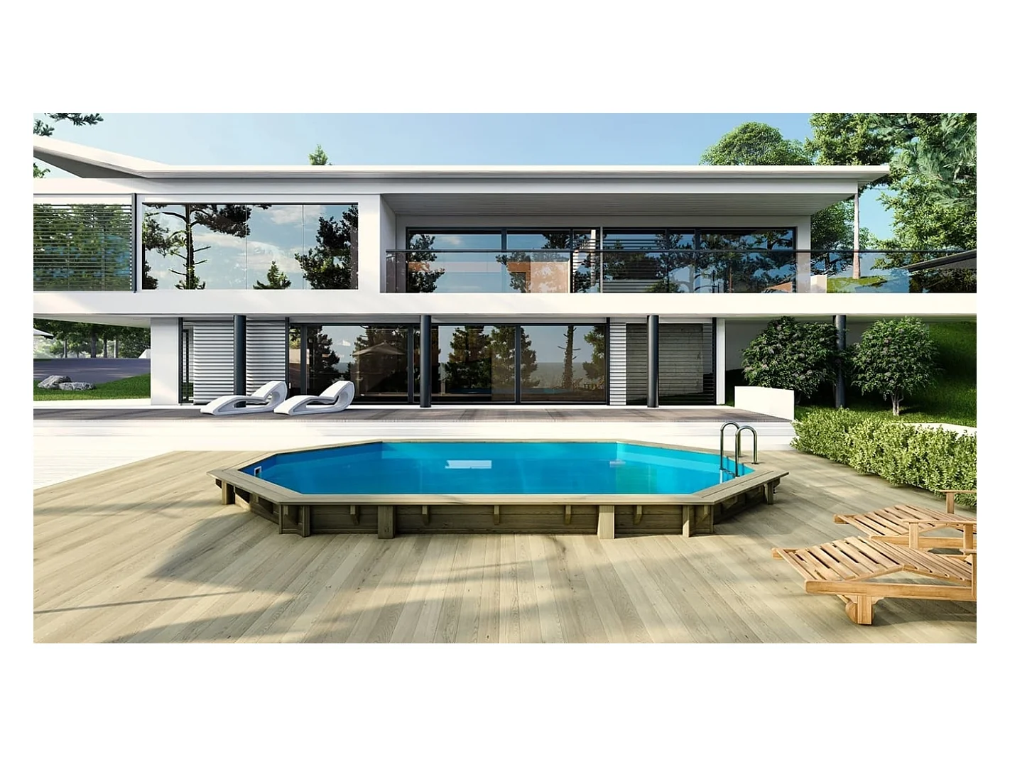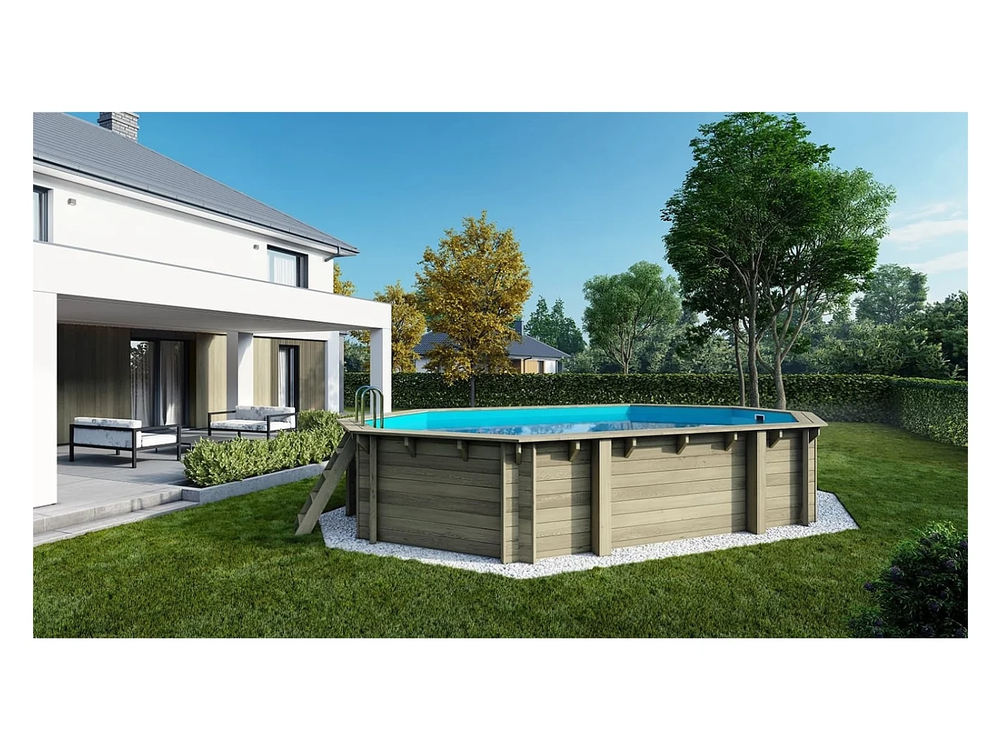 Piscina in legno Nemo 7.3x3.97 - H.1.45 m con profilo da cementare - BAS7305OSPI+SZA - ALTANKA
