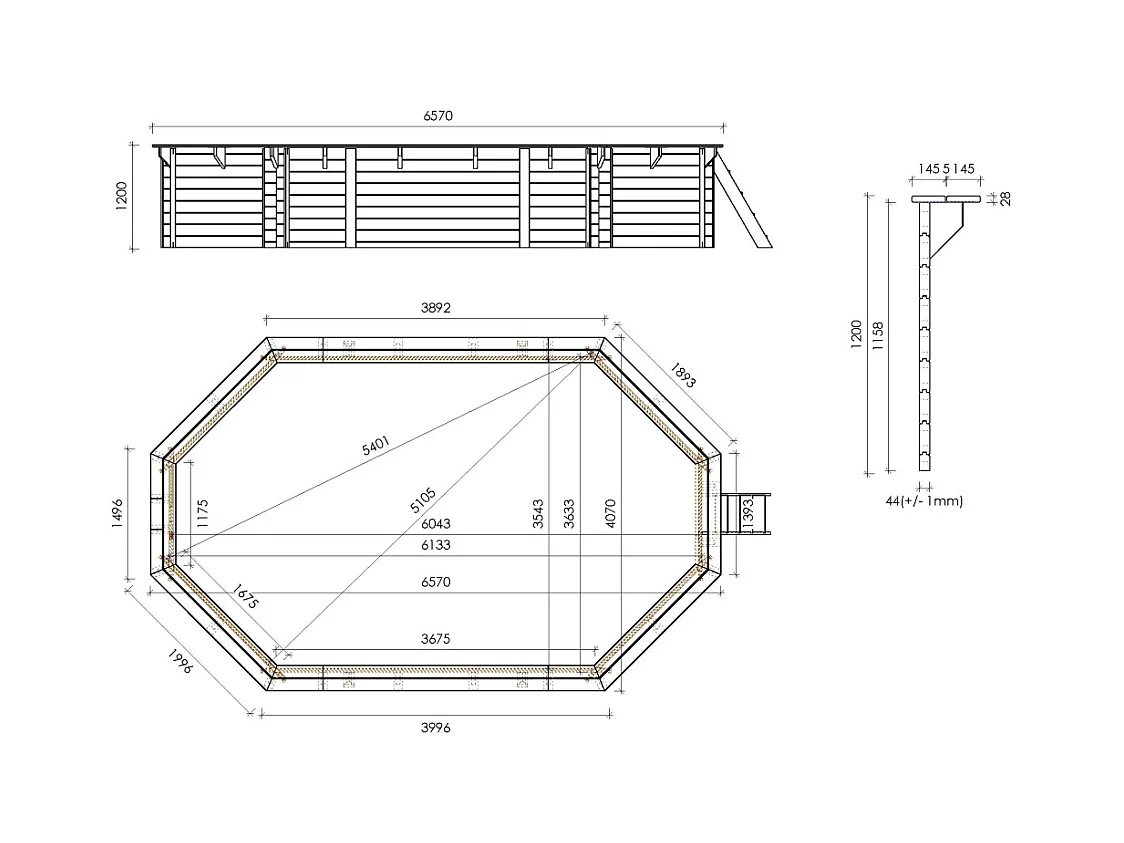 Piscina in legno 6.57x4.07 - H.1.20 m su profilo da cementare - BAS748OSPI+SZA - ALTANKA