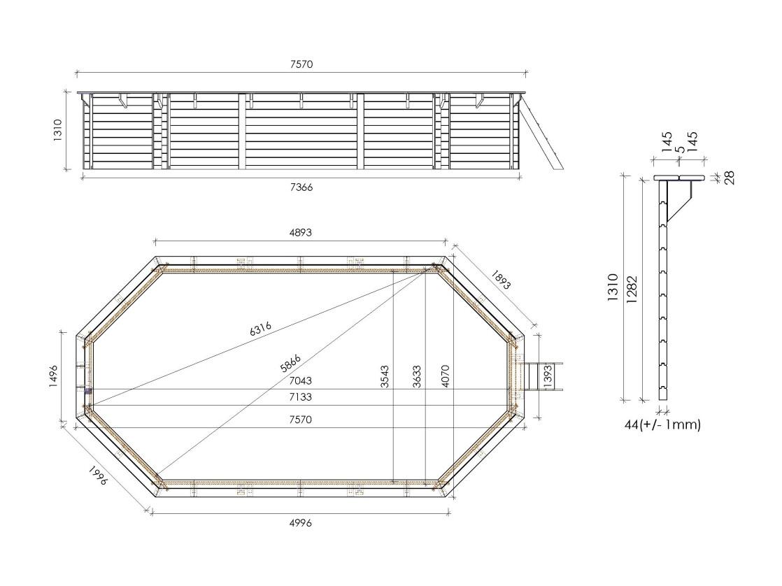 Piscina in legno 7,57x4,07 - H.1,31 m fissate su calcestruzzo esistente - BAS745OSPL - ALTANKA