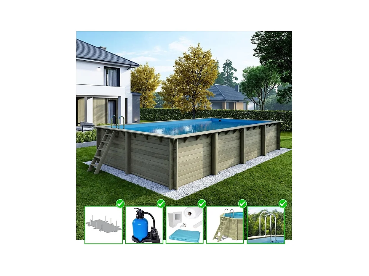 Piscina in legno Aqua 7x3.75 - H.1.45 m su telaio senza cementazione - BAS7308OSPU+SZA - ALTANKA