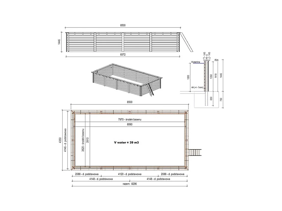 Piscina in legno Aqua 8.5x4.35 - H.1.45 m con profilo da cementare - BAS7309OSPI+SZA - ALTANKA