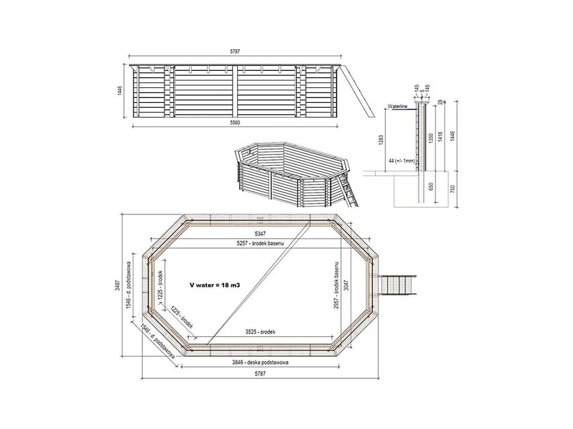 Piscina in legno Nemo 5.79x3.49 - H.1.45 m con profilo da cementare - BAS7304OSPI+SZA - ALTANKA