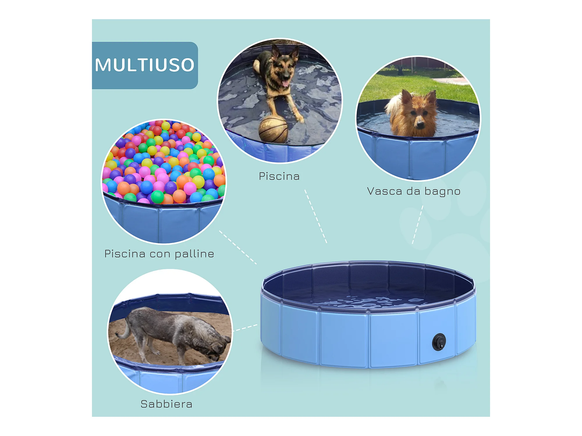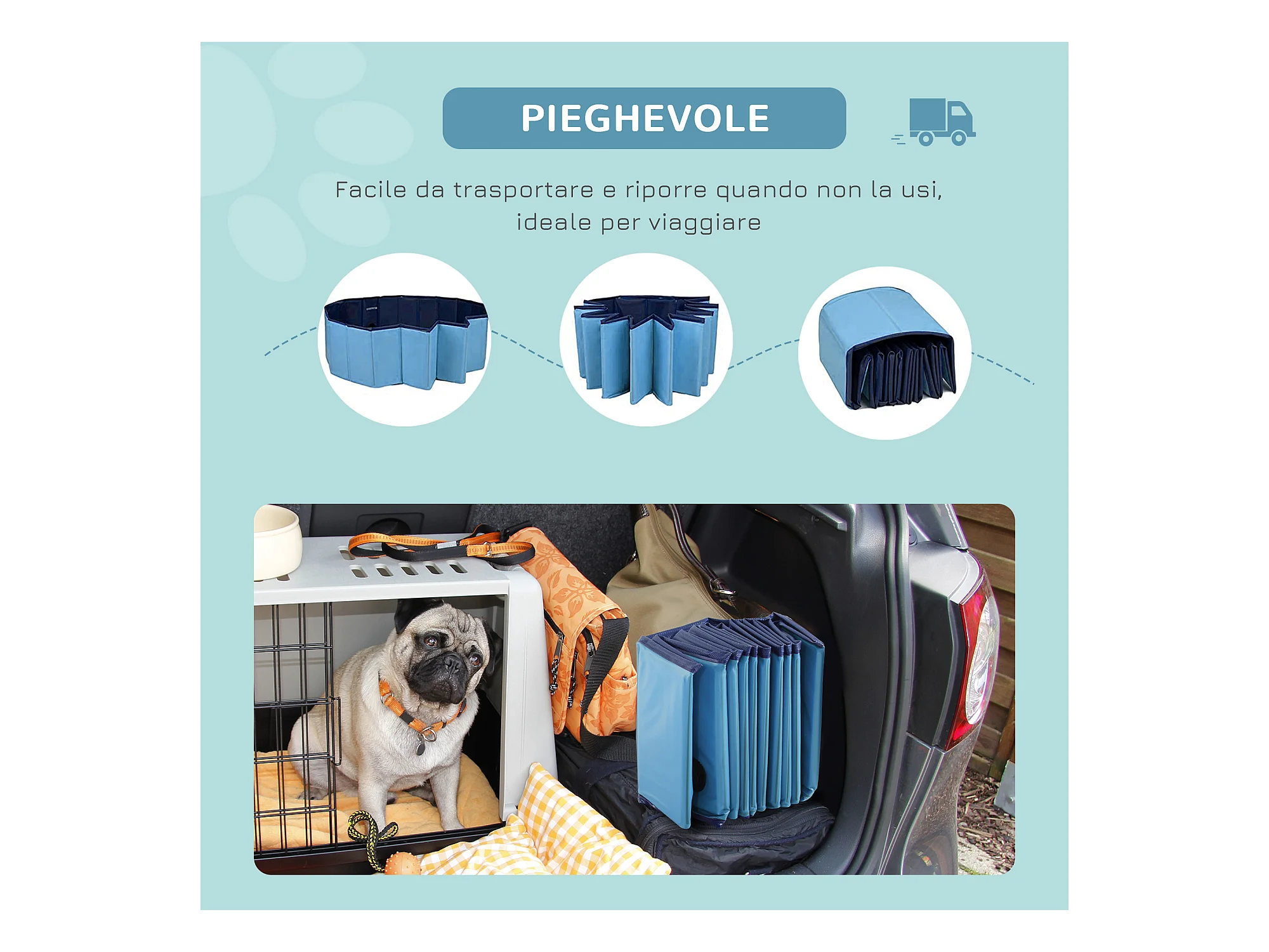 Piscina per cani in plastica pieghevole bordo rinforzato con 15 pannelli
