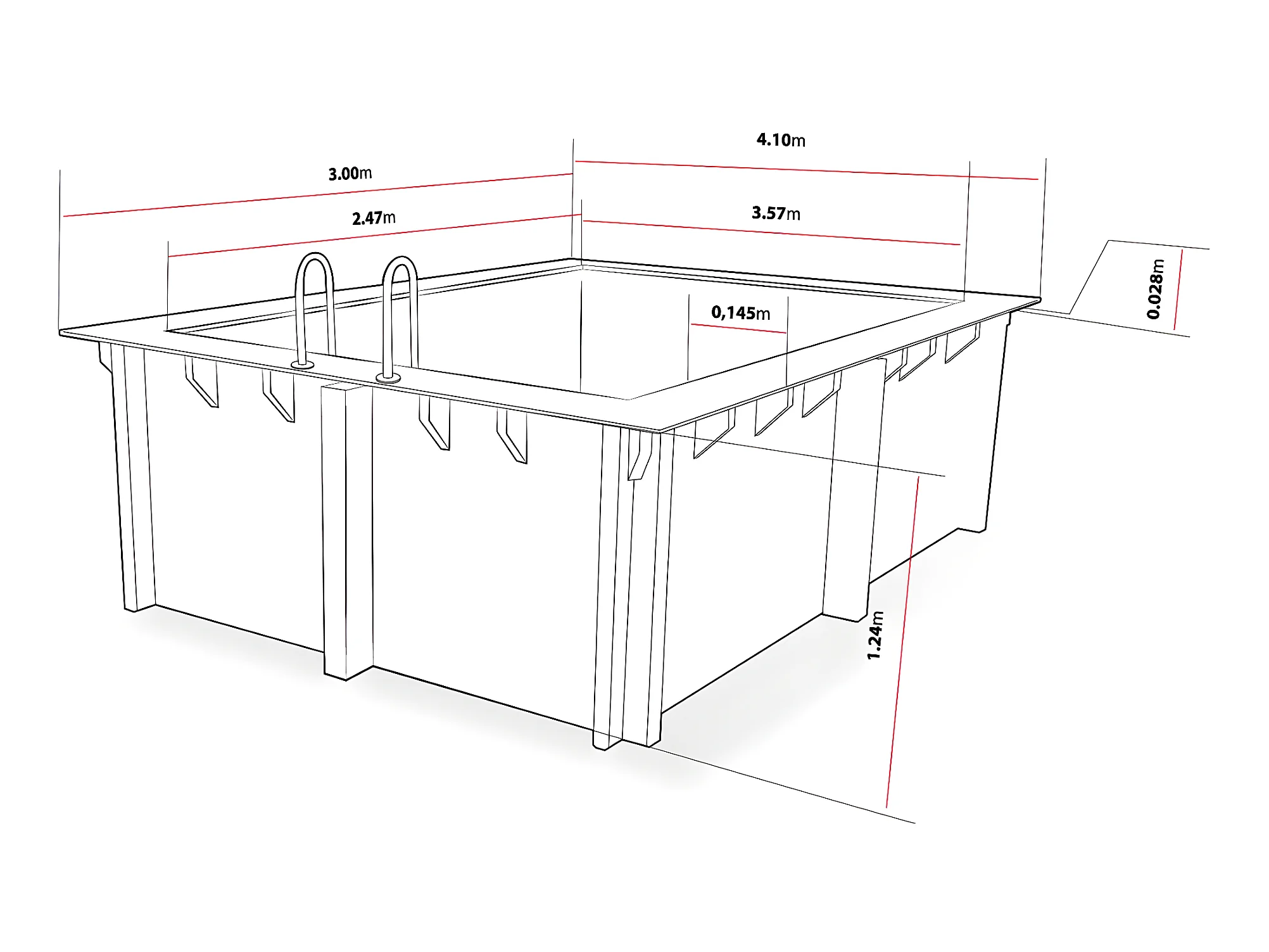 Piscina rettangolare in legno "Caimans" - 4,10 x 3,00 x 1,24 m