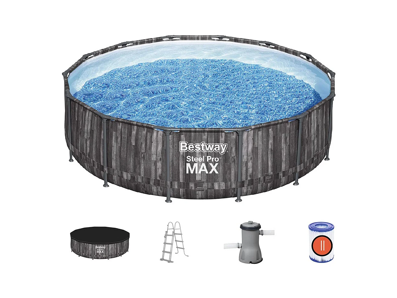 Piscina Fuori Terra Bestway Steel Pro Max Effetto Legno 427x107 cm con Pompa Filtro a Cartuccia 3.028 L/H Copertura e Scaletta