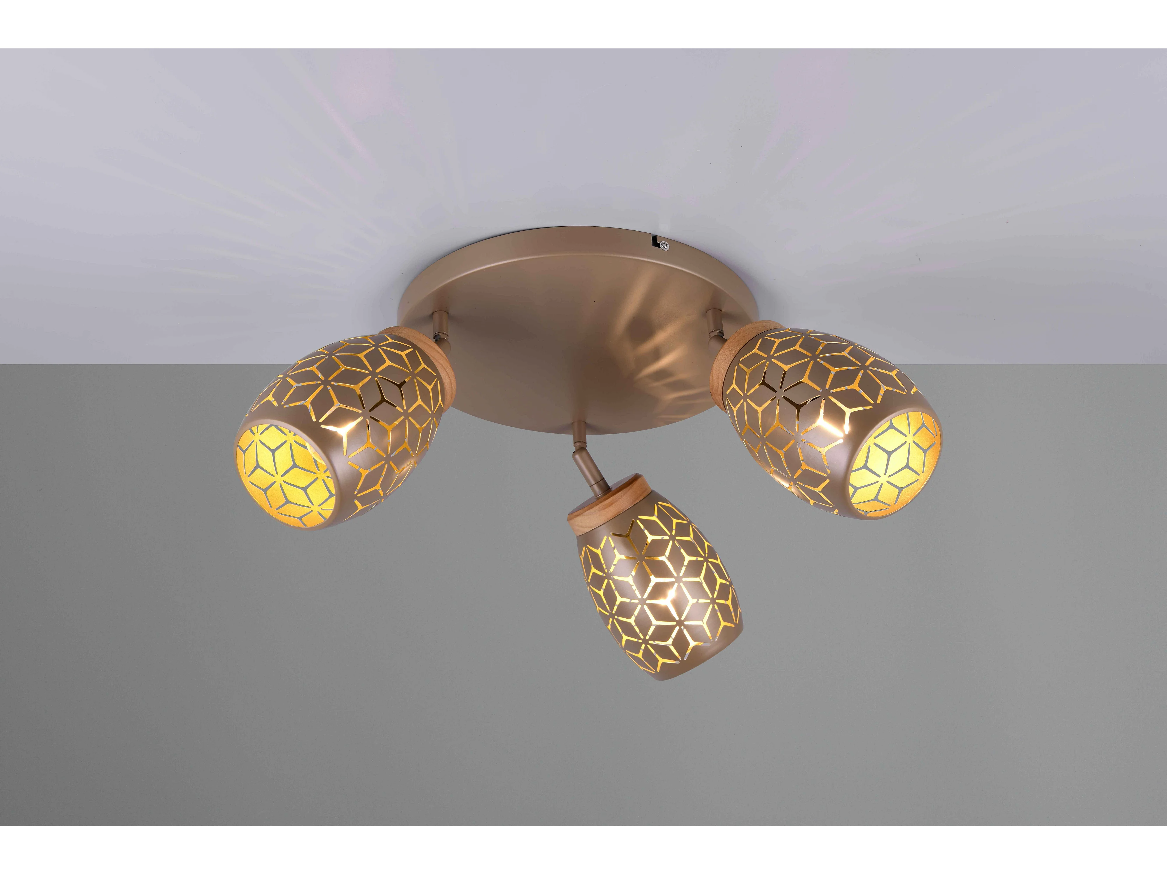 Plafoniera 3 spots, metallo, caffè e legno, D 58 cm, Bidar