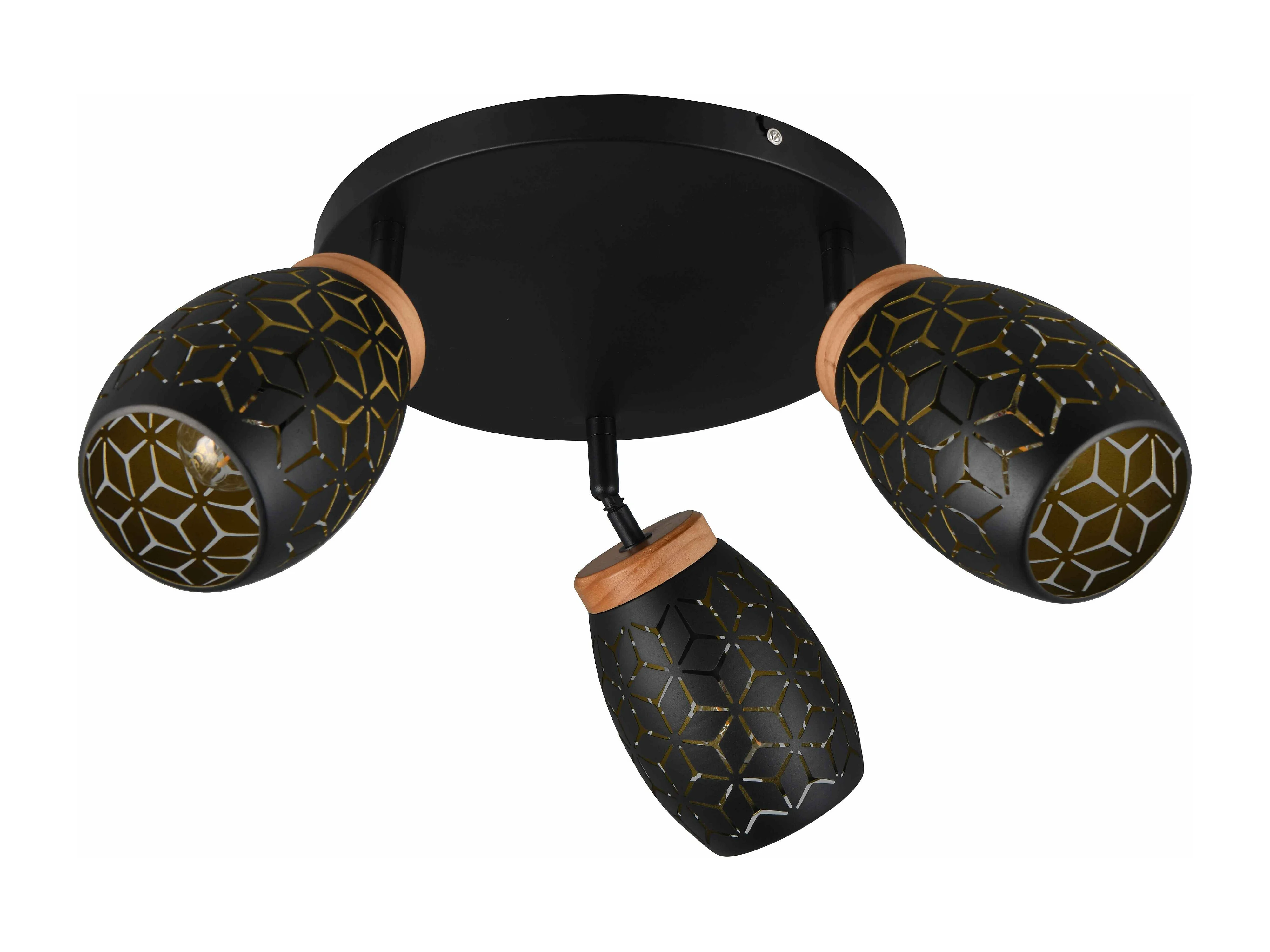 Plafoniera 3 spots, metallo, nero e legno, D 58 cm, Bidar