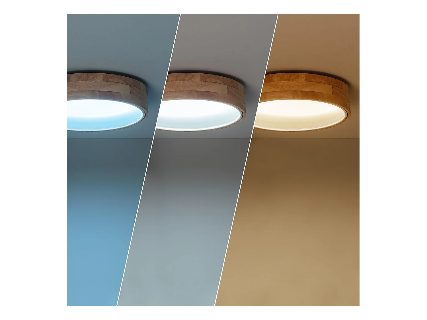 Plafoniera LED 24W Circolare Legno CCT Selezionabile Ø418 mm Semi-Dari Bianco